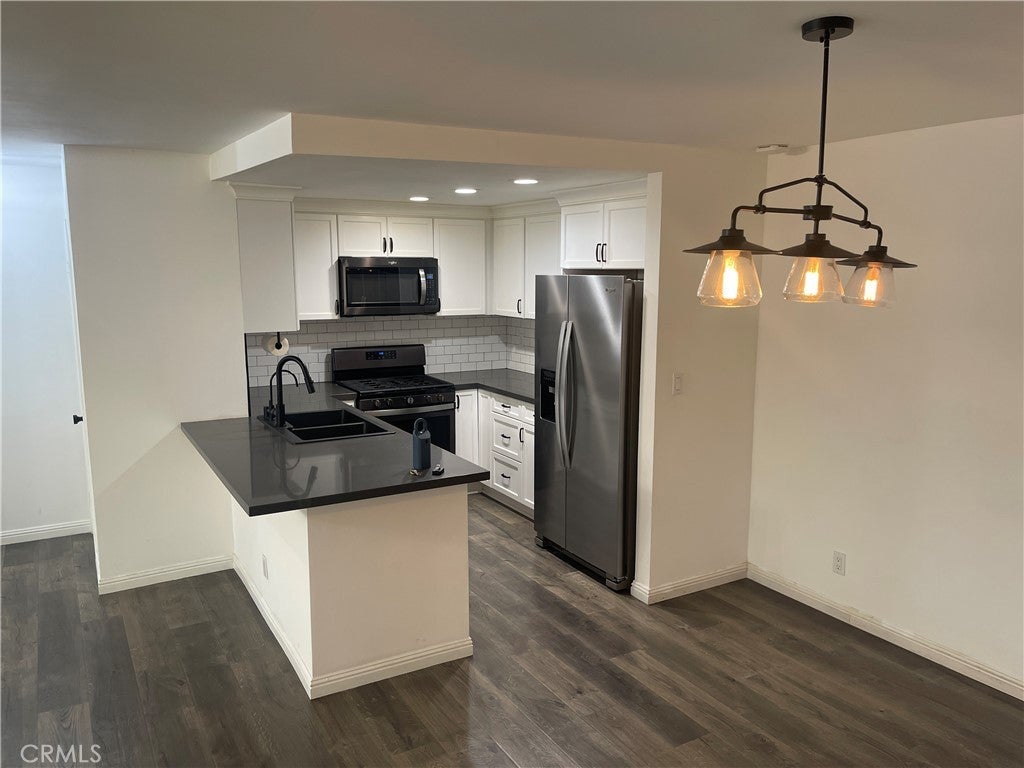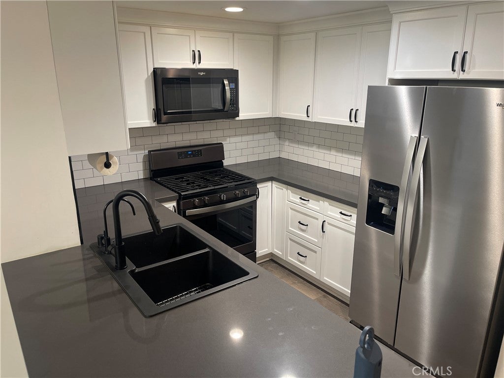Welcome home to this beautifully remodeled 3-bedroom, 2-bath condominium that perfectly blends modern design with everyday comfort. Every detail has been thoughtfully selected to create a warm, inviting, and sophisticated living space. The fabulous kitchen features quartz countertops, stylish hardware accents, and a built-in water filtration system, along with a brand-new refrigerator. The open layout connects seamlessly to the main living area, highlighted by premium water-resistant flooring that enhances both beauty and functionality. Each bathroom has been tastefully renovated, featuring elegant fixtures and a refined modern aesthetic. Everyday convenience is elevated with in-unit laundry hookups, a NAVIEN tankless water heater, and a brand-new washer and dryer. The primary suite is spacious and serene, offering a professionally designed three-door closet and sound-reducing windows for added comfort. Enjoy cozy evenings by the charming fireplace or step outside to your private patio—a perfect spot for relaxation or morning coffee. Additional highlights include central air conditioning, ground-level access (no stairs), and two tandem parking spaces. Set within a beautifully maintained, gated community, residents can enjoy lush landscaped grounds, walking paths lined with fruit trees, and a sparkling pool and hot tub—a true resort-style oasis that welcomes you home. Ideally located in desirable Van Nuys, just minutes from the 405 freeway, shopping, dining, and entertainment, this property offers an exceptional combination of style, comfort, and convenience.