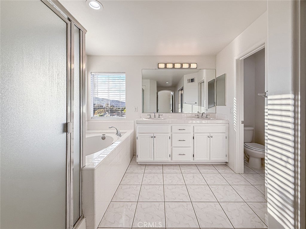 Views, Views, Views. Don’t miss out on this gorgeous four (4) bedroom, three (3) bath property in the gated community of White Cloud Estates. This is the largest floor plan in the community with 2,607 square feet. The home is located on one of the best lots in the community on a Cul-de-sac with no neighbors in front or back of the property. Upon entry, you are welcomed to a naturally lighted living room with vaulted ceilings and new wood flooring, leading to a dining room with a brass chandelier. The kitchen features a center island, recessed lighting, and a bay window offering a view of the valley and mountains. The attached family room features a fireplace, built-in speakers in the ceiling, and a sliding door leading to the backyard with a covered patio. The backyard offers a covered porch and spectacular views of the valley, mountains, and incredible sunsets. There is a side yard with artificial turf that is perfect for a kid's play yard, courtyard, or a place to relax and watch the sunset. Come inside and go down the hallway leading to a bedroom, a full-size bath, and a 3-car garage. Make your way up the spiral staircase to a large loft area. If desired, the loft can be easily converted to a 5th bedroom or used as a home office as-is. Upstairs you will find a spacious and grand master suite with double door entry, high ceilings, lots of windows, two walk-in closets with mirrored entry doors, a spa-size tub, a separate shower, and dual sinks. Upstairs also offers gorgeous mountain and sunset views from both the master bedroom as well as the master bath. Additional features include two additional large secondary bedrooms upstairs with access to a full bath with dual sinks, a laundry room with washer/dryer hook-ups & cabinetry, recessed lighting, light fixtures, and much more! The gated home community offers a pool & spa. Close to hiking trails, freeway, shopping centers, and great schools!