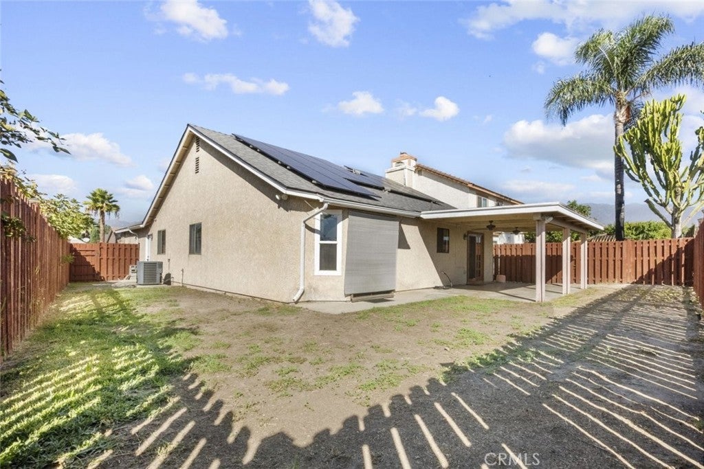 Welcome to 7265 Parkside Place, a charming single-family home nestled in the desirable city of Rancho Cucamonga. This inviting 3-bedroom, 2-bath residence offers 1,272 sq. ft. of comfortable living space on a 6,240 sq. ft. lot. The home features high ceilings and ceiling fans throughout, creating an open and airy atmosphere. Enjoy cozy evenings by the fireplace in the living room or prepare meals in the kitchen equipped with classic white appliances. A dedicated laundry room adds convenience, while the attached 2-car garage provides ample parking and storage. Once outside a spacious backyard with a covered patio, an ideal canvas to design your dream outdoor retreat. The home also includes solar panels for energy efficiency and cost savings. Perfectly located near parks, shopping, and top-rated schools including Victoria Groves Elementary School, Vineyard Junior High School, and Los Osos High School, this property is ready to welcome its next owner.