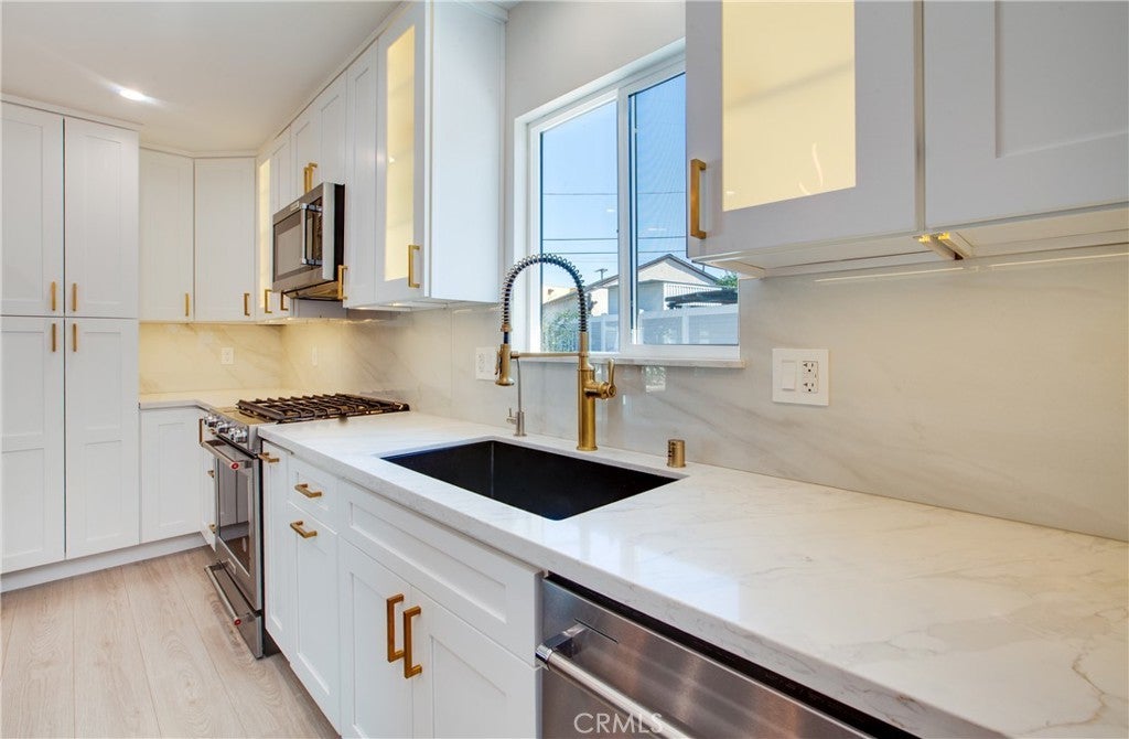 • AppliancesDishwasher, Disposal, Gas Range, Microwave, Refrigerator, Tankless Water Heater