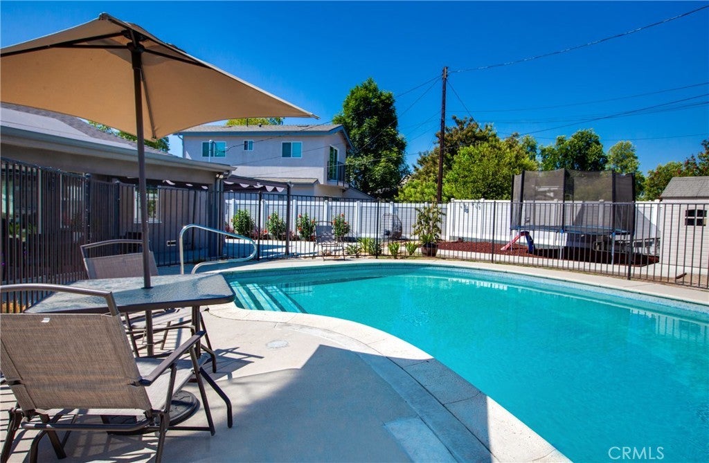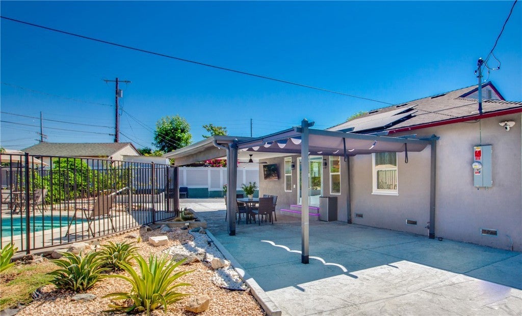 Located on a peaceful cul-de-sac, behind a beautiful gated entrance, this thoughtfully upgraded 3 bed, 2 bath smart home sits on a rare 10,546 sq ft lot in Van Nuys. Designed with attention to detail and long-term quality in mind, the home combines modern smart technology, energy efficiency, and a spacious outdoor layout. Features include app-controlled smart lighting throughout, keypad entry door, smart garage opener, Doorbird video intercom at the front gate, and a full Ring security system with motion-activated floodlight cameras around the perimeter. The kitchen shines with KitchenAid stainless steel appliances and quartz countertops, creating a modern and functional space for cooking and entertaining. Bathrooms have been upgraded with modern double sinks and a sleek stand-up shower, blending style with practicality. Recent upgrades include newly installed solar panels, a new roof, complete new plumbing, tankless water heater, and new insulation. The home also offers a fully updated 200AMP electrical system with a sub panel in the garage, ideal for a future JADU. A Level 2 (50AMP) EV charger is already installed. Enjoy the private gated pool, a covered patio connected to the home, and a charming gazebo perfect for entertaining or relaxing in your backyard oasis. There is plenty of space to expand or create your ideal outdoor retreat. Don’t miss this rare opportunity to own a move-in-ready, smart, and sustainable home that perfectly balances luxury, comfort, and future potential. A true Van Nuys gem waiting for you to make it your own.