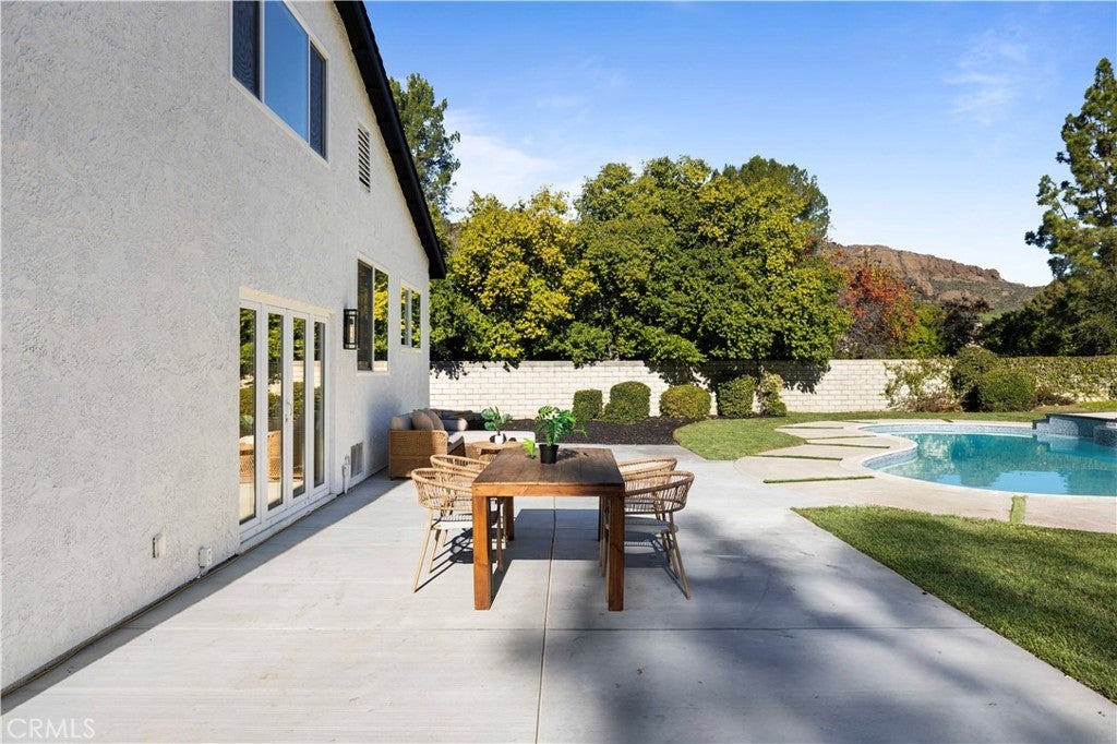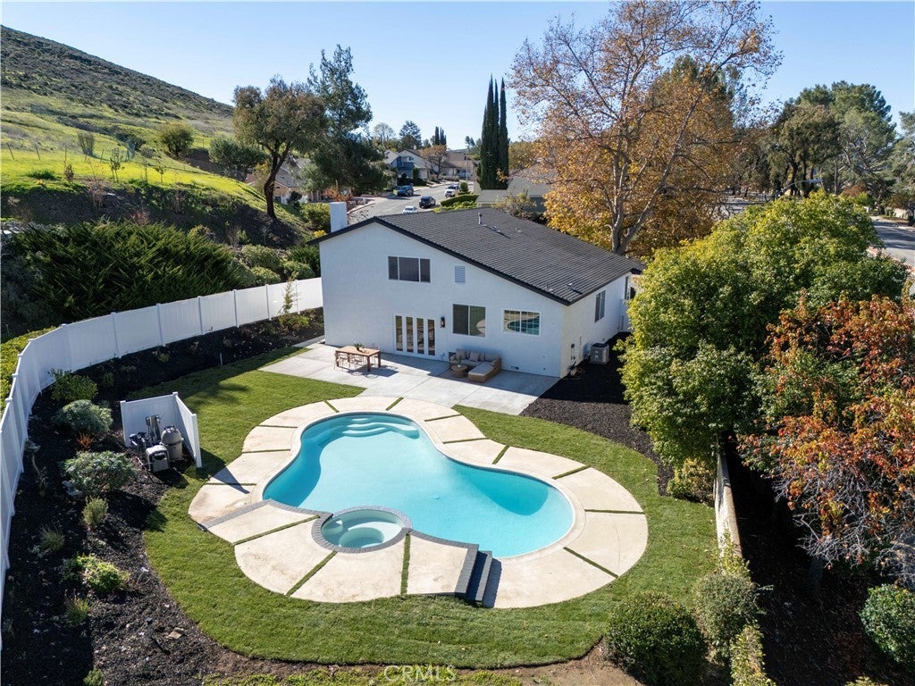 Beautifully remodeled home in the heart of West Thousand Oaks featuring stunning mountain views and located in a quiet, highly desirable neighborhood. This move-in-ready property boasts a completely renovated kitchen with brand-new appliances, fully remodeled bathrooms with new tile and modern vanities, new flooring throughout, beautiful custom carpentry finishes, and a striking modern fireplace that anchors the main living space. The backyard has been fully upgraded with new hardscaping and landscaping, and the pool has been freshly replastered and refreshed, perfect for relaxing or entertaining. A rare opportunity to own a turnkey home with exceptional upgrades, outdoor living, and scenic surroundings in one of Thousand Oaks’ most sought-after areas.