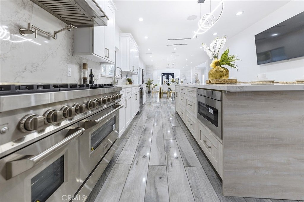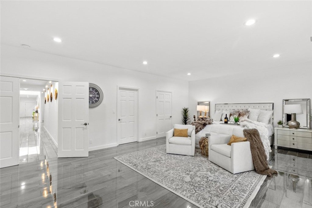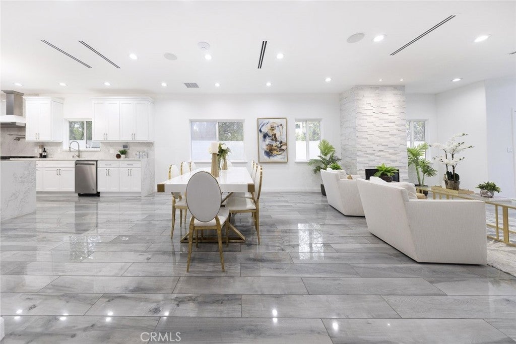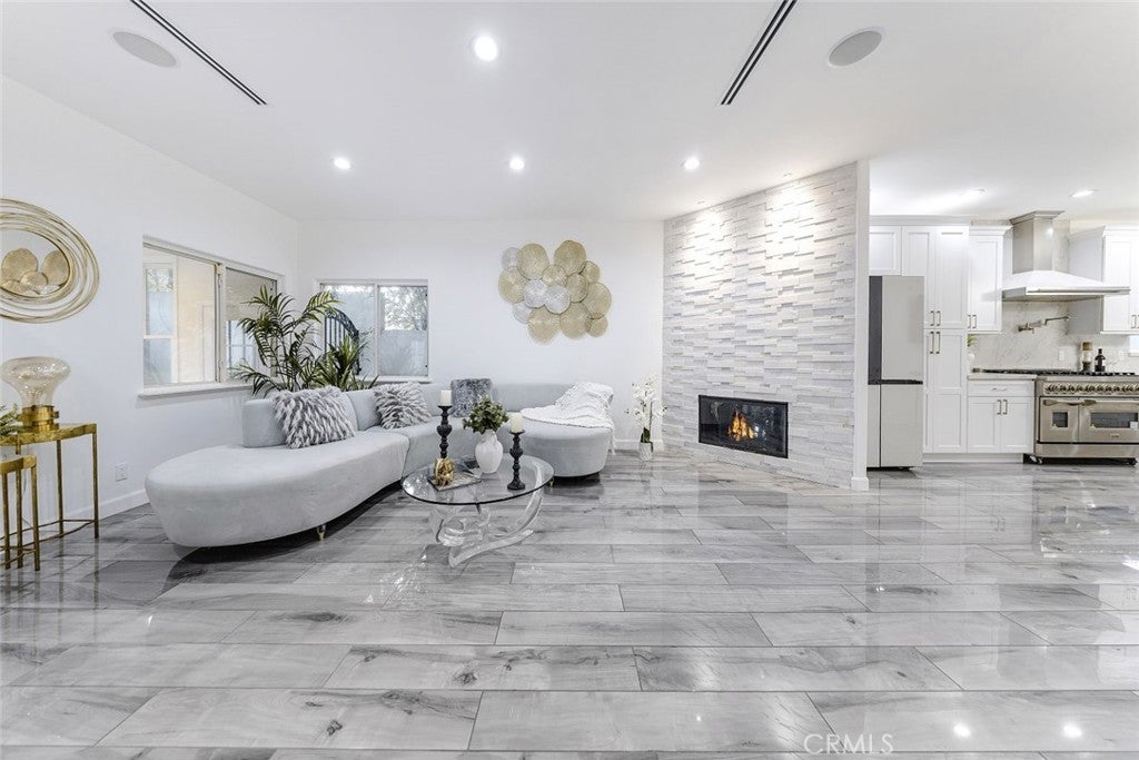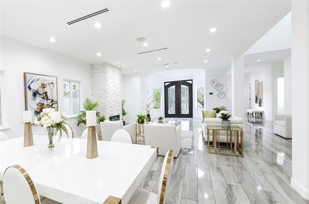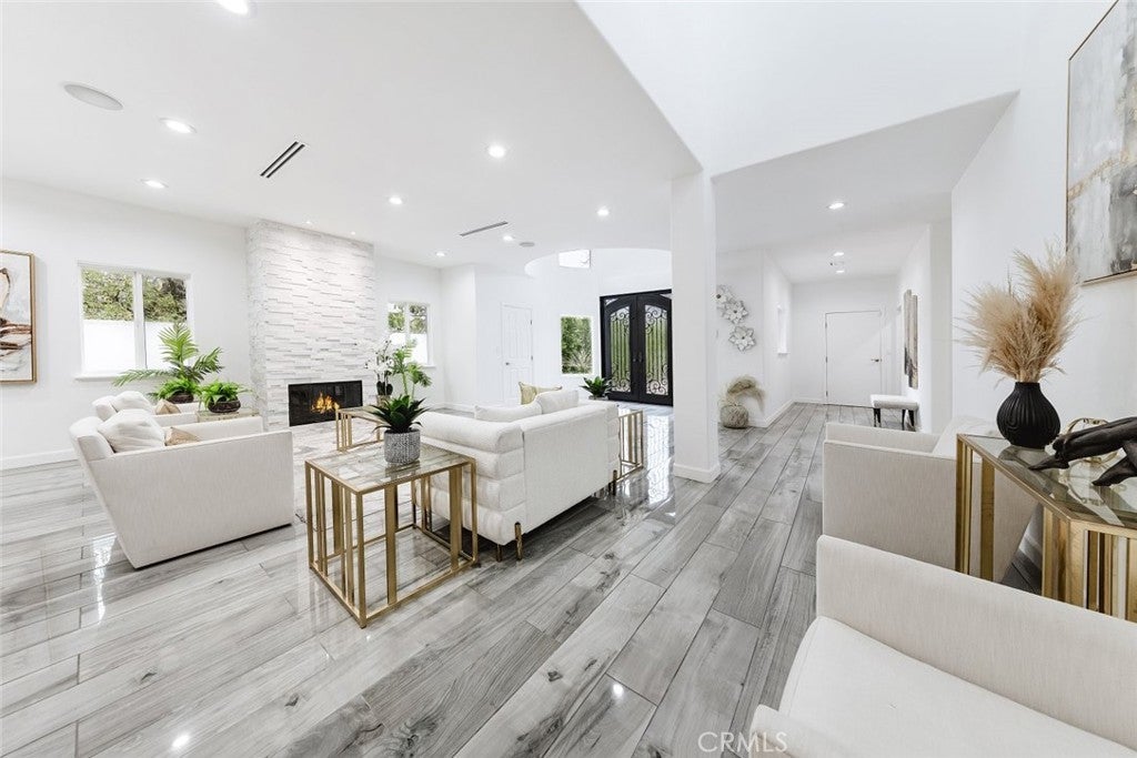 Experience modern luxury in this newly remodeled and stunning home in the heart of South Tarzana. This property showcases thoughtful design, high end finishes, and exceptional attention to detail, creating an ideal blend of style and comfort. Entry through grand double doors reveals a bright and inviting interior filled with recessed and natural lighting throughout. The spacious floor plan offers six well designed bedrooms, including two primary bedrooms with one located on the main level and one upstairs. Each bedroom features its own bathroom, providing privacy and convenience, with a total of seven bathrooms in the home. New wood look tile flooring and modern appliances complement the contemporary aesthetic. The living areas are warm and welcoming, featuring a fireplace in the living room and an additional fireplace in one of the bedrooms. The open layout flows seamlessly and includes a flexible bonus room suitable for an office, fitness area, or additional living space. A dedicated laundry room adds everyday functionality. The outdoor space offers an inviting setting for relaxation and entertaining, featuring a pool, built in barbecue area, and a spacious patio surrounded by landscaped grounds. Gated entry enhances privacy while creating a peaceful outdoor environment ideal for gatherings or everyday enjoyment. Situated in a desirable Tarzana neighborhood, this home provides convenient access to shopping, dining, and entertainment while maintaining a quiet residential atmosphere. Every detail has been carefully curated to deliver a refined and comfortable living experience. This newly remodeled residence presents a rare opportunity to enjoy modern living in one of Tarzana most sought after locations.