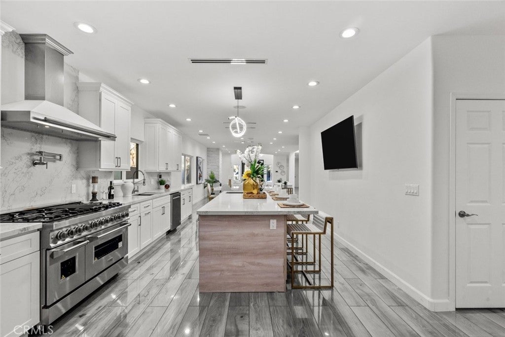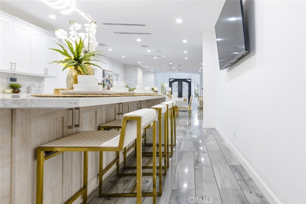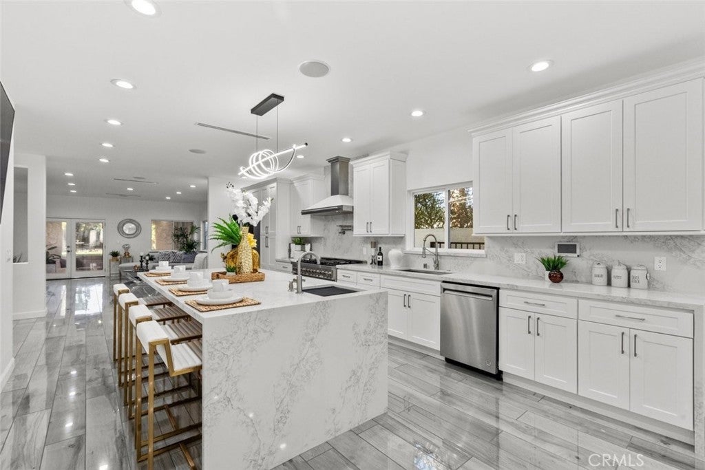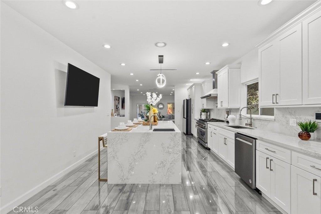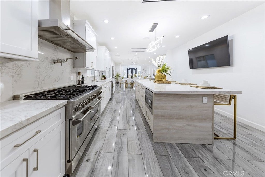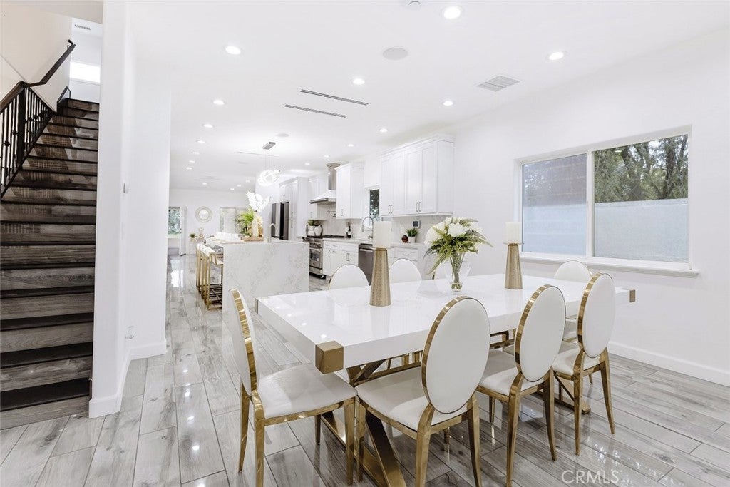 Experience modern luxury in this newly remodeled and stunning home in the heart of South Tarzana. This property showcases thoughtful design, high end finishes, and exceptional attention to detail, creating an ideal blend of style and comfort. Entry through grand double doors reveals a bright and inviting interior filled with recessed and natural lighting throughout. The spacious floor plan offers six well designed bedrooms, including two primary bedrooms with one located on the main level and one upstairs. Each bedroom features its own bathroom, providing privacy and convenience, with a total of seven bathrooms in the home. New wood look tile flooring and modern appliances complement the contemporary aesthetic. The living areas are warm and welcoming, featuring a fireplace in the living room and an additional fireplace in one of the bedrooms. The open layout flows seamlessly and includes a flexible bonus room suitable for an office, fitness area, or additional living space. A dedicated laundry room adds everyday functionality. The outdoor space offers an inviting setting for relaxation and entertaining, featuring a pool, built in barbecue area, and a spacious patio surrounded by landscaped grounds. Gated entry enhances privacy while creating a peaceful outdoor environment ideal for gatherings or everyday enjoyment. Situated in a desirable Tarzana neighborhood, this home provides convenient access to shopping, dining, and entertainment while maintaining a quiet residential atmosphere. Every detail has been carefully curated to deliver a refined and comfortable living experience. This newly remodeled residence presents a rare opportunity to enjoy modern living in one of Tarzana most sought after locations.