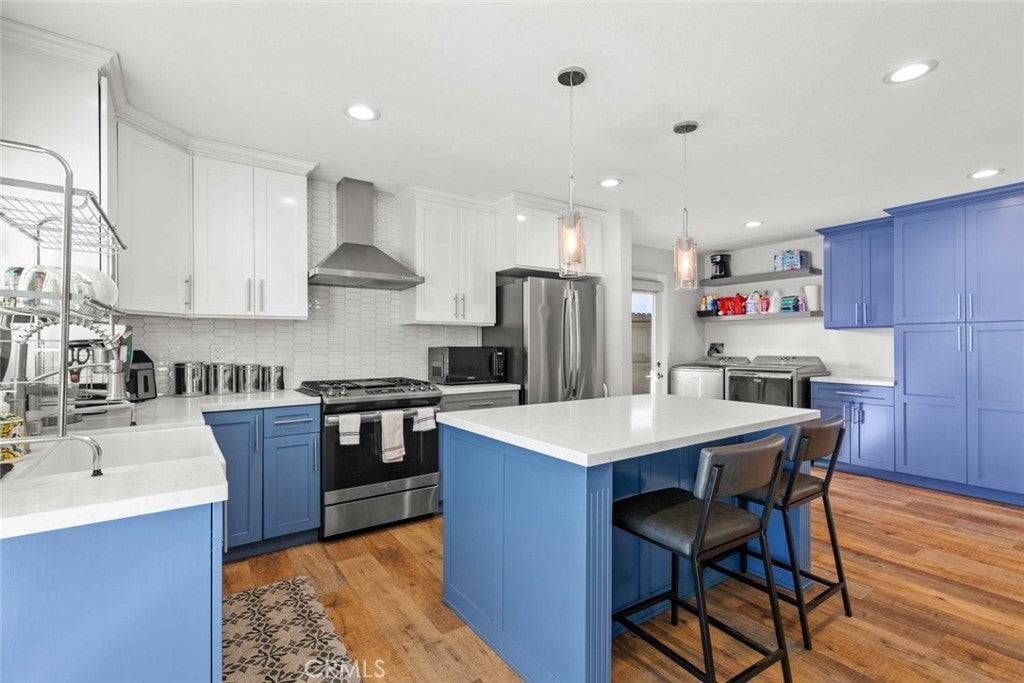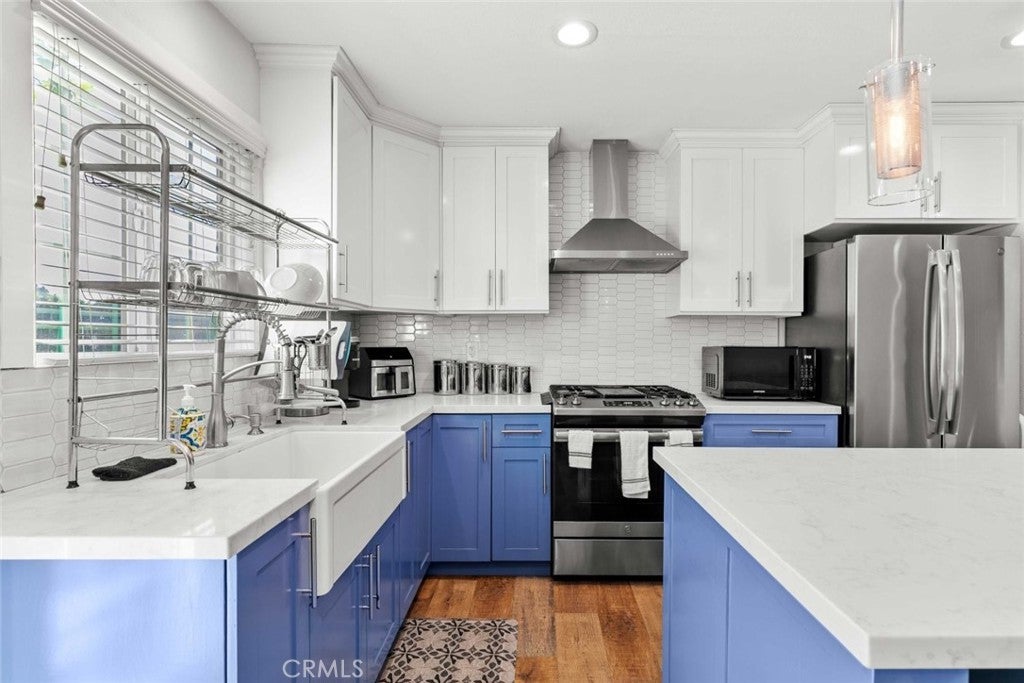 Located in Hillside Village in El Sereno, this beautifully remodeled home at 2468 Richelieu Avenue offers a blend of style, comfort, and flexibility with scenic hillside surroundings. The main residence features three bedrooms and two bathrooms across approximately 1,514 square feet and has been thoughtfully updated with modern upgrades and clean finishes throughout. The interior offers an open layout with natural light, wood tone flooring, recessed lighting, and a comfortable flow ideal for everyday living and entertaining. The updated kitchen serves as a true centerpiece and includes stainless steel appliances, a farmhouse sink, white countertops, and a spacious island with a built in wine cooler, creating an inviting setting for cooking and gathering. Both bathrooms have been tastefully remodeled, and the home includes a convenient interior laundry area. A standout feature is the detached approximately 272 square foot studio, offering excellent flexibility for a home office, guest space, creative studio, or additional retreat area. The backyard is designed for indoor outdoor enjoyment and includes a patio with a covered deck, recessed lighting, ceiling fans, and a built in barbecue with bar seating, ideal for entertaining and relaxing. Set on a quiet street, the property offers a peaceful residential setting with convenient access to Pasadena, Alhambra, and Downtown Los Angeles. Enjoy close proximity to local favorites such as El Sereno Park and Ascot Hills for outdoor recreation. This is a rare opportunity to own a remodeled home in Hillside Village in El Sereno with versatile spaces and a highly convenient location.