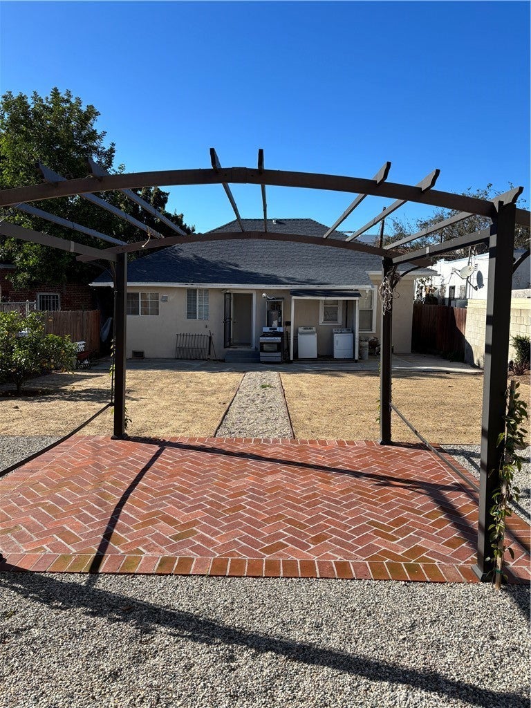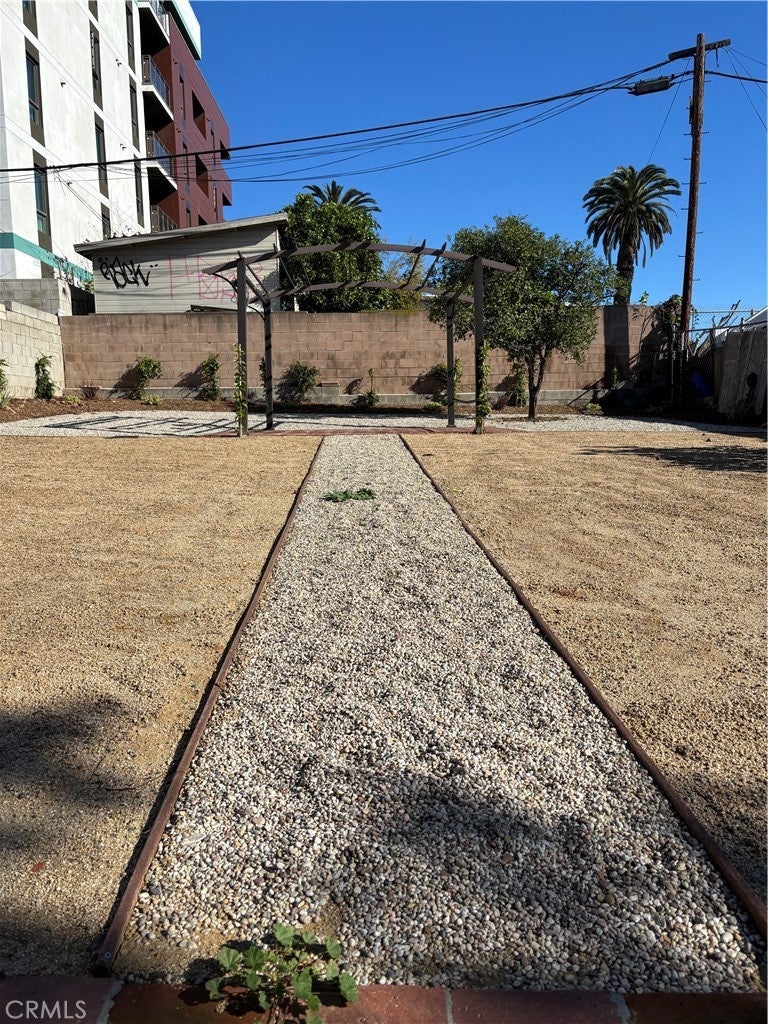 Conveniently located one block south of Olympic Blvd and within walking distance to shopping, dining, and public transportation. Single-family residence with flexible duplex potential. Features two kitchens and four rooms, including two suites with walk-in closets, plus two additional den/living areas. Remodeled kitchens and bathrooms. Wood flooring throughout. Large backyard with new landscaping, mature trees, plants, and a central arbor ideal for outdoor gatherings. Gated front yard with iron gate provides ample parking for up to three vehicles. Refrigerator, washer, and dryer included.