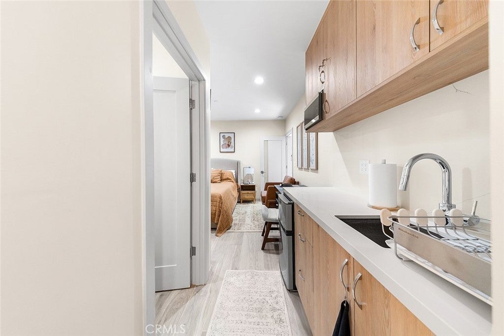 Welcome to this fully independent, newly remodeled 4-bedroom, 3-bathroom residence spanning approximately 1,600 sq ft, ideally located in the heart of Tarzana. Thoughtfully designed with modern smart home features and high-end finishes throughout, this home offers both style and functionality. The interior showcases recessed lighting, light-toned laminate flooring, and crisp white paint, creating a bright, clean, and contemporary atmosphere. Designed for versatility and convenience, the home features 1.5 kitchens, including a secondary kitchenette, making it ideal for extended living, multi-generational households, rehabilitation focused businesses such as sober living or rehab. This home has been carefully curated for comfort, including spa inspired bathrooms that provide a relaxing, upscale feel. The home also offers its own private laundry, separate utilities, and a distinct address, ensuring complete independence and privacy. Enjoy resort-style outdoor living throughout the property, complete with a fully equipped BBQ outdoor kitchen, fire pit, and outdoor TV making it perfect for entertaining or unwinding in your own private retreat. Additional highlights include gated privacy, ample parking, garage access, and quality craftsmanship throughout. Ideally located near Ventura Blvd, with close proximity to shopping, dining, and easy freeway access, this home offers the perfect blend of modern luxury and everyday convenience.