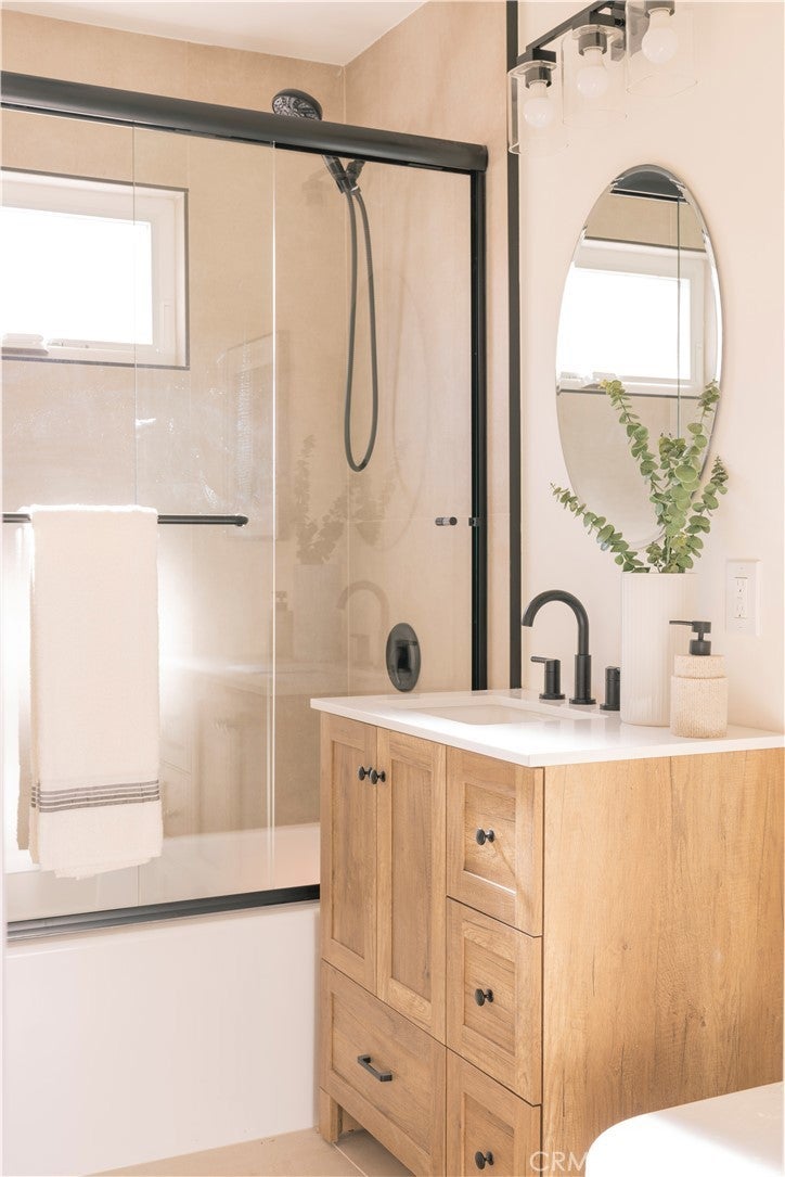 This thoughtfully reimagined property delivers modern comfort, quality craftsmanship, and versatile living in a fully turnkey setting. Renovated from the ground up, the home offers a clean, contemporary aesthetic with attention to detail throughout, making it truly ready for immediate enjoyment. The 1,358 SF main residence offers 3 bedrooms and 2.5 bathrooms, featuring wide-plank flooring, recessed lighting, and an open, inviting floor plan filled with natural light. At the center of the home is a well-appointed kitchen with custom cabinetry, stone countertops, a large island, stainless steel appliances, and refined designer finishes—ideal for both everyday living and entertaining. Major systems have been fully updated, including a new HVAC system, solar panels, and other improvements completed under permit. Outdoors, the private yard is designed for relaxed living and entertaining, complete with a swimming pool, covered patio, and fresh landscaping that creates a true retreat setting. Enhancing the property’s appeal is a newly constructed, fully permitted 355 SF ADU studio with its own separate address, providing excellent flexibility for rental income, guests, or extended family. The ADU includes an open-concept layout, kitchenette, full bathroom, and private entrance. Additional improvements include new windows, doors, updated bathrooms, and modern fixtures throughout, resulting in a home that lives and feels like new. A rare opportunity to acquire a turnkey property offering modern amenities, energy efficiency, income potential, and resort-style outdoor living.