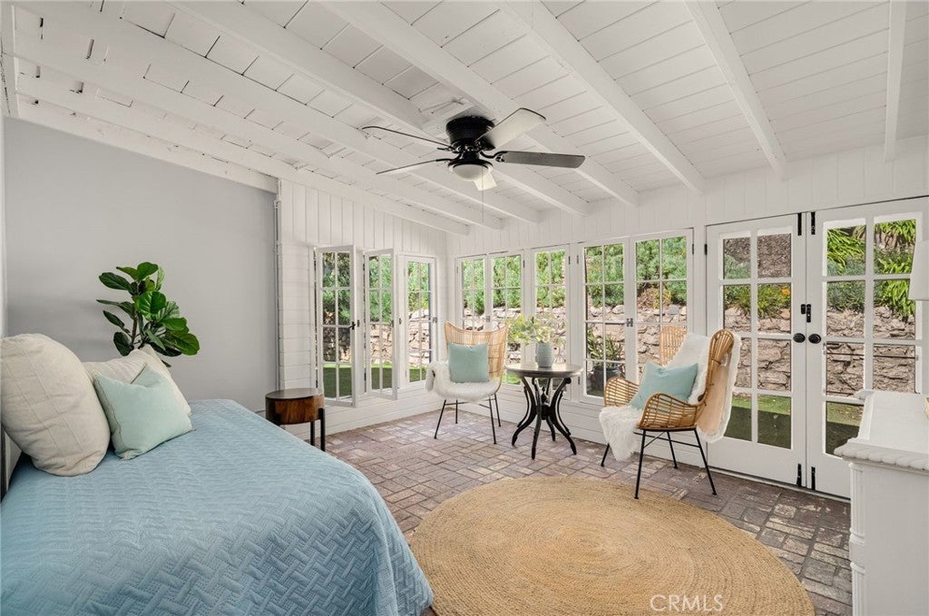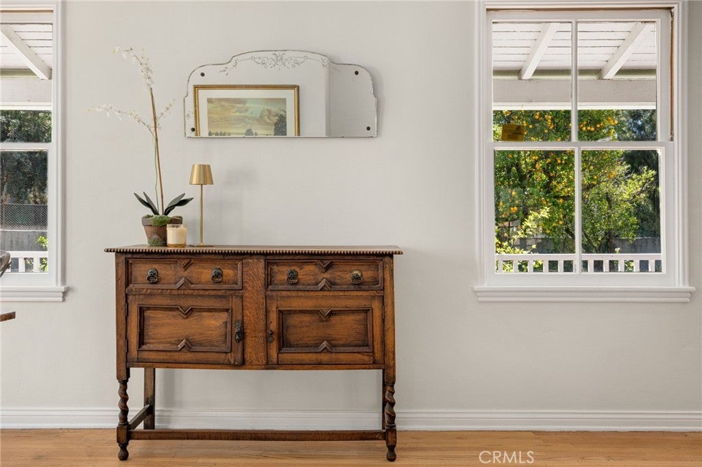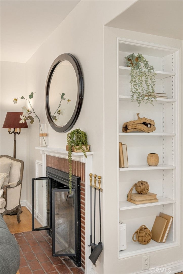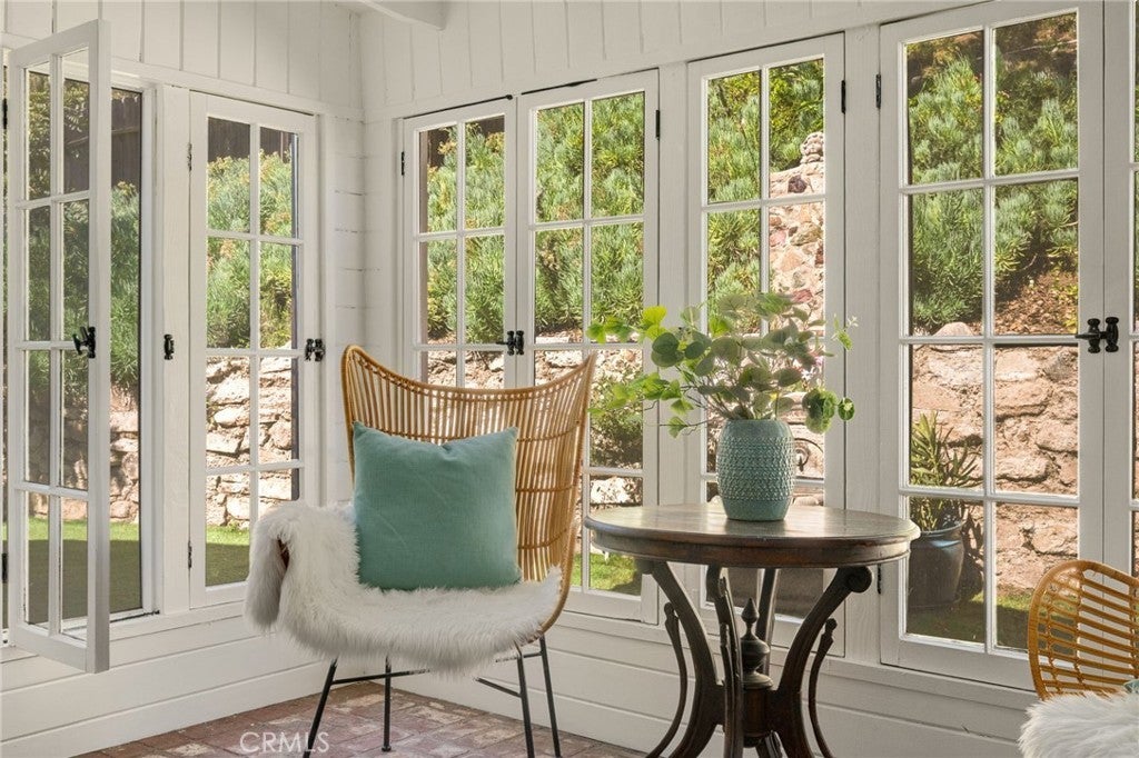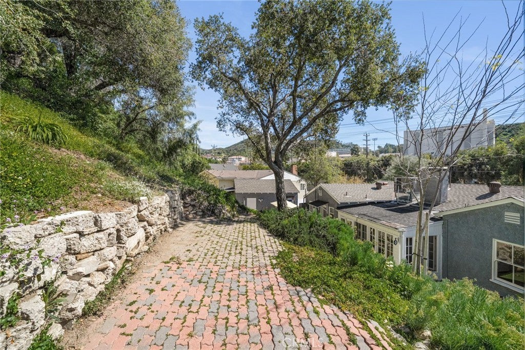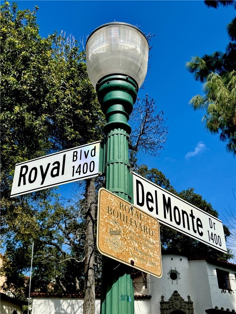 A rare opportunity to own a character rich 1936 traditional home tucked within a secluded cul-de-sac enclave in coveted Royal Canyon, just moments from the Royal Boulevard Historic District. With only a handful of homes on this quiet, flat street, offerings here are scarce.This timeless residence showcases original hardwood floors, wood framed windows, a classic brick fireplace, and a charming covered front porch. The spacious living and dining rooms flow together seamlessly, filled with natural light and overlooking the large grassy front lawn. A sunroom with brick floors and French doors opens to the rear patio and private hillside backdrop, creating effortless indoor outdoor living. Two well positioned bedrooms share a beautifully remodeled, period inspired full bath.The vintage style kitchen features original wood cabinetry, an iconic O’Keefe and Merritt stove, quartz countertops, and black and white tile flooring. A separate breakfast room, dedicated laundry room, and discreet powder bath add convenience. The landscaped grounds offer inviting patios and mature fruit trees including pomegranate, orange, tangerine, and lemon. A rustic staircase leads to additional hillside space, enhancing privacy and flexibility. Newer central air conditioning, a detached garage, and a generous motor court provide comfort and functionality. Located near award winning Glendale schools, Nibley and Verdugo Woodlands Parks, Glendale Community College, Whole Foods, The Americana at Brand, and the soon to open Erewhon Market. Just off the 2 and 134 freeways, enjoy quick access to DTLA, the studios and neighborhoods both east and west of Glendale. A true storybook home in one of Glendale’s most beloved neighborhoods.