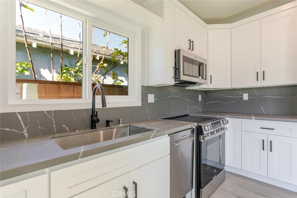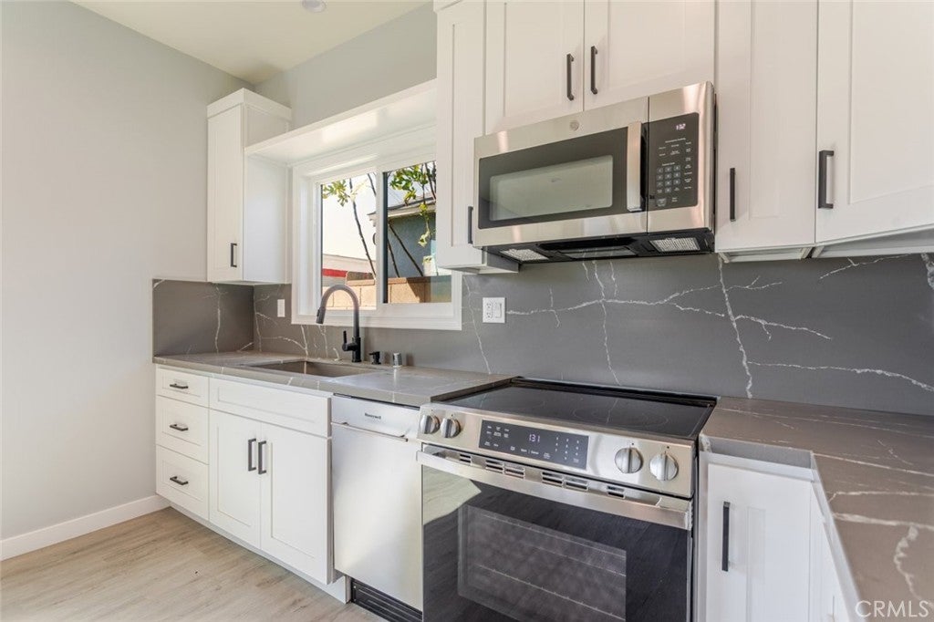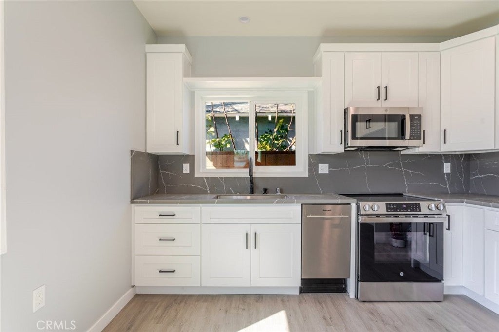 Brand new construction ADU with a private entrance through the alley. This property offers a privacy and convenience. This modern 2-bedroom, 1-bath unit features energy-efficient solar panels to help reduce utility costs and includes one dedicated on-site parking space. The home offers a bright, open layout with contemporary finishes, a full kitchen with new appliances, and an in-unit washer and dryer for everyday convenience. Designed for comfortable living, the unit includes efficient heating and cooling, ample storage, and abundant natural light. Ideal for a tenant seeking a clean, quiet, and private space with easy access to nearby shopping, dining, and major freeways. Move-in ready and never previously occupied.