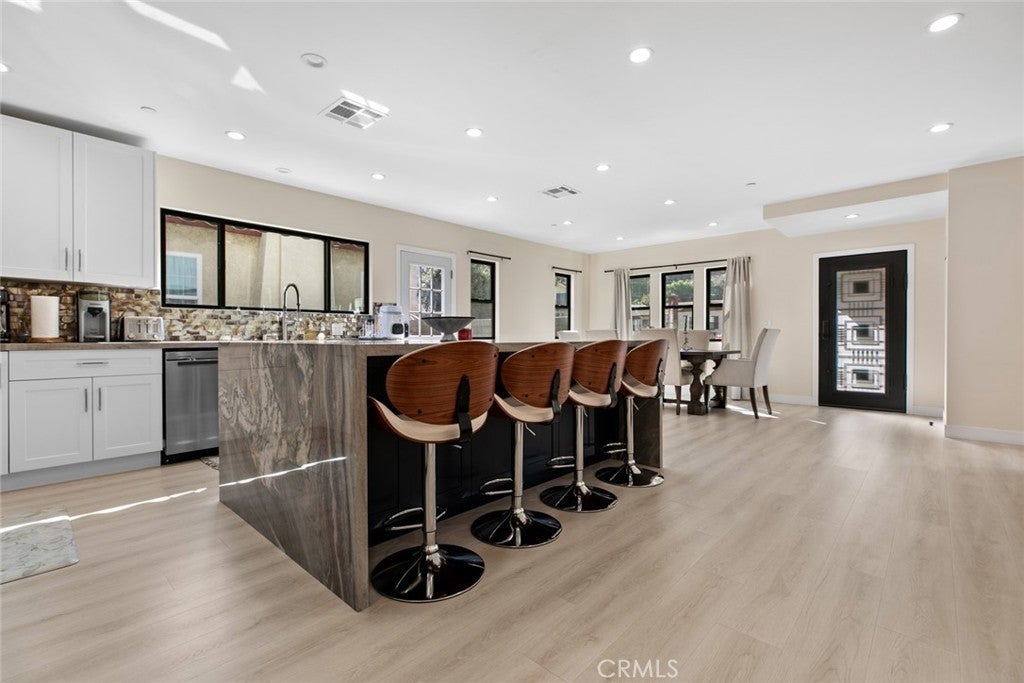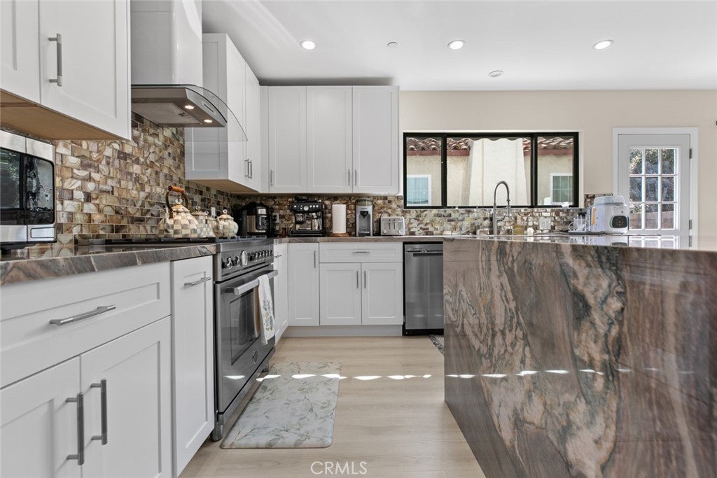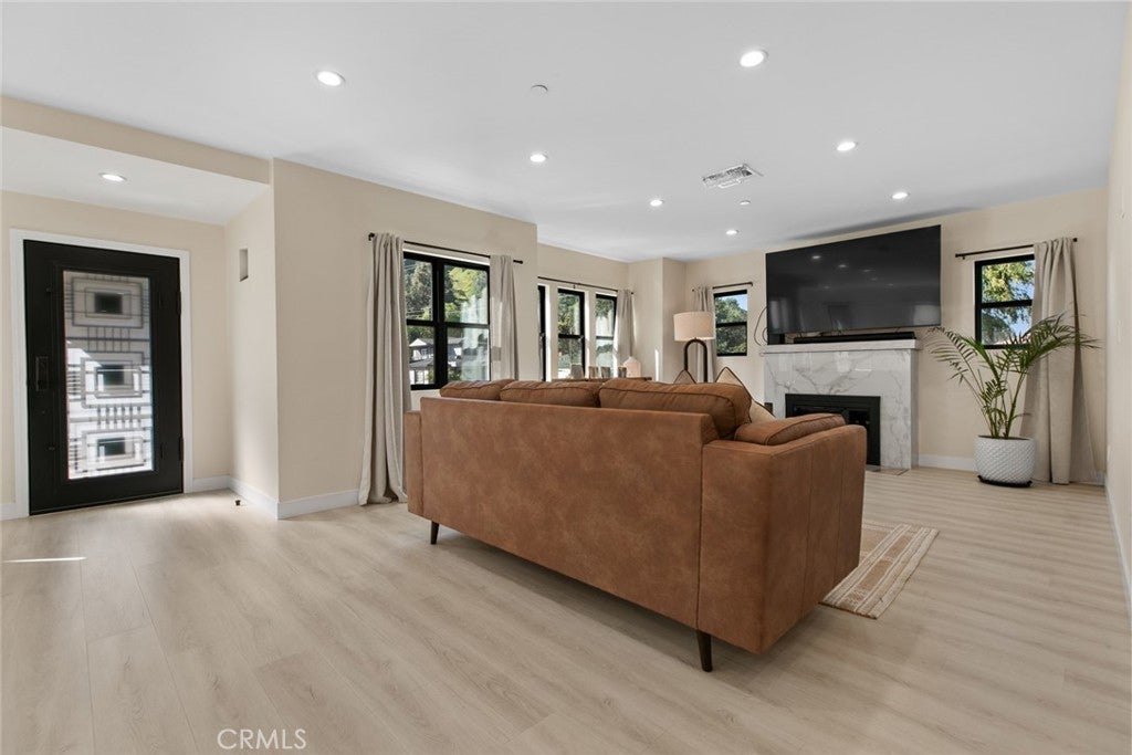 Located in Glenoaks Canyon, this stunning 1929 Tudor home has been completely remodeled and updated and is just perfect for those who appreciate the perfect blend of classic style and modern convenience. The beautiful entry door leads into a spacious open floor plan filled with an abundance of natural light and a lovely marble fireplace. The gorgeous eat-in kitchen includes an exquisite granite waterfall island, amazing tile backsplash, and brand new appliances including a wine refrigerator. The full bathrooms are truly aa oasis, featuring floating vanities, luxurious glass enclosed showers and the master suite bathroom includes a wonderfully deep soaking tub. The charming backyard includes a large covered patio with recessed lighting making it perfect for family gatherings. As a fabulous bonus, the garage has been converted to a permitted, 734sqft, 1bd, 1ba ADU with all new appliances, including a washer and dryer. There is also a finished attic with an additions 490sqft that can be used as a bonus area. Just minutes from top-rated Glendale schools, shopping, golf courses, and transportation. All additions and construction has been done with permits except the attice. Seller will provide buyer with all of the architectural plans and permits. Broker and Broker’s agents do not represent or guarantee the accuracy of any square footage figures, dimensions, or sizes of any lot, structure or space, the legal bedroom or bathroom count, the status of any permitted or unpermitted areas or structures, what can be demolished or built on the property nor any and all historical restrictions, building permits, requirements and/or ordinances or any other information concerning the condition or features of the property. Buyer is advised to, and hereby confirms that they will independently verify the accuracy of all information through the City, personal inspection and with appropriate professionals to satisfy themselves and rely only on the same.