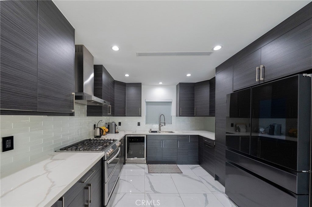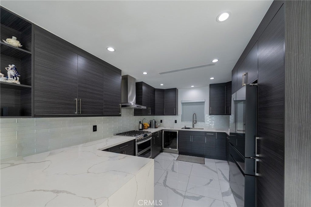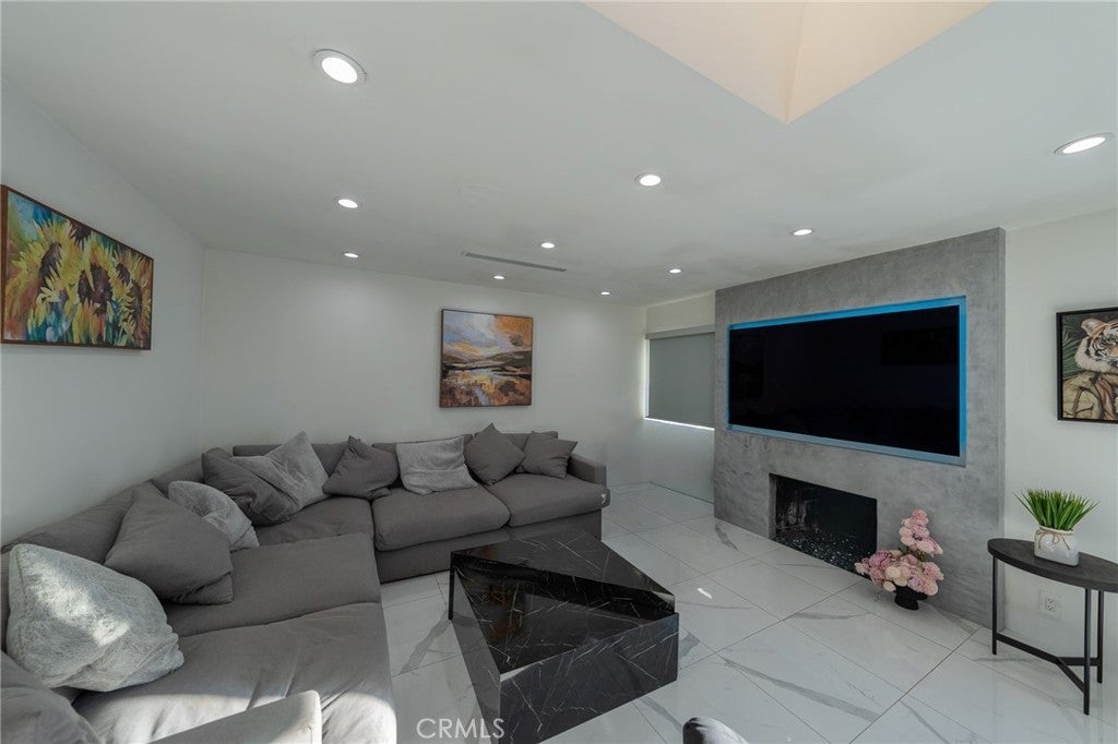 Modern Sophistication Meets Resort-Style Living in this FULLY FURNISHED beauty! Experience the pinnacle of contemporary design in this meticulously upgraded residence. From the curb, the home impresses with a sleek facade featuring natural wood siding, smooth stucco, and a designer glass-inlay front door. Step inside to an open-concept sanctuary defined by brilliant white marble-style flooring, recessed LED lighting, and a skylight that floods the space with natural light. Home also has an upgraded solar system to minimize your utility bill! The chef’s kitchen is a masterpiece of form and function, boasting custom charcoal-textured cabinetry, striking quartz countertops with a waterfall edge, and professional-grade stainless steel appliances—including a built-in wine cooler. The living area serves as a perfect focal point with its custom-finished accent wall and integrated media center. The backyard is an entertainer’s dream, featuring a massive covered deck with warm wood paneling that transitions seamlessly into a geometric hardscape with integrated turf. Relax by the sparkling pebble-tec pool and spa, surrounded by lush privacy hedging and designer lighting. This is more than a home; it’s a private retreat.