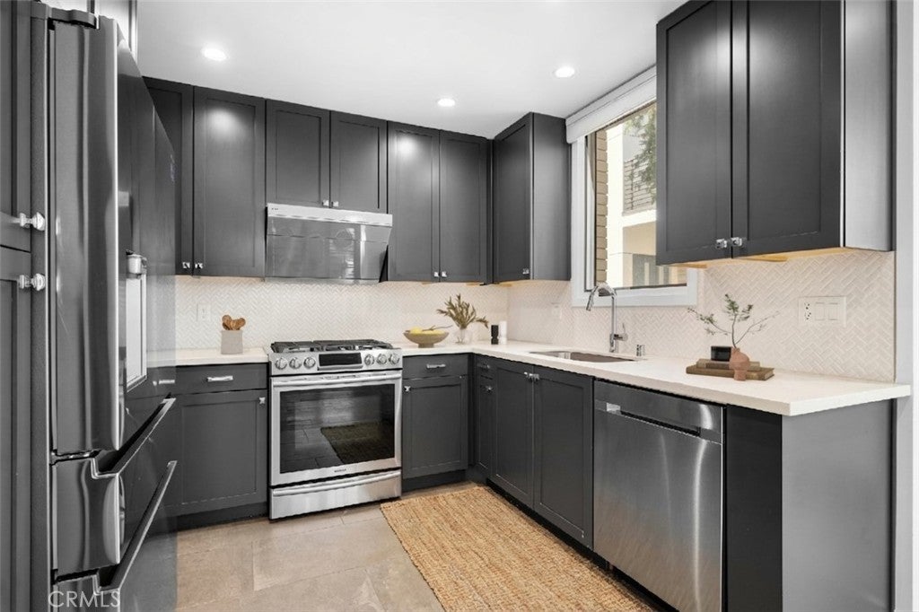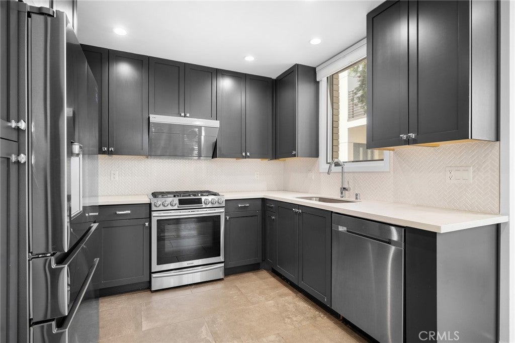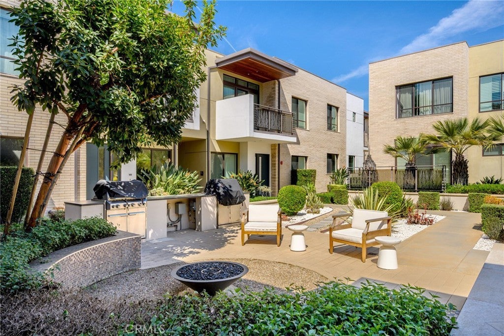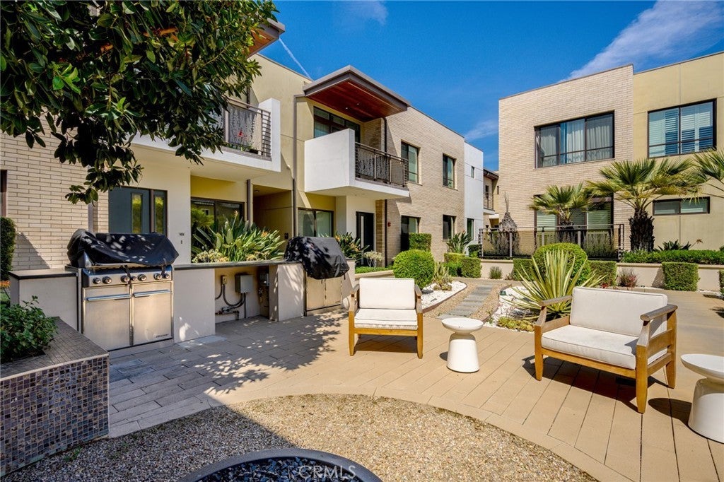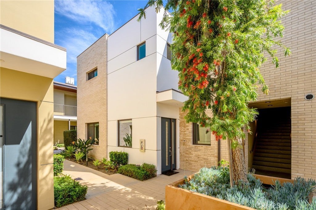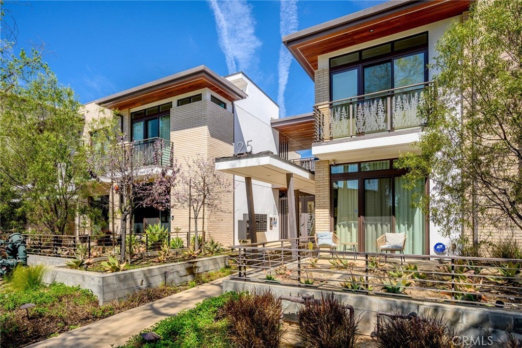 Located within the prestigious West Grove gated community, this luxury single-story, ground-level condo showcases soaring 10-foot ceilings, a captivating open-concept layout, and sophisticated contemporary finishes throughout. This serene courtyard-facing residence features a light-filled living and dining area that seamlessly opens to a private patio—perfect for indoor-outdoor living. The modern kitchen is beautifully appointed with quality cabinetry, quartz countertops, a stylish tiled backsplash, and upgraded stainless steel appliances. The home offers two generously sized bedrooms, including a spacious primary ensuite with ample closet space and direct access to its own private patio, along with a large full bath. The second bedroom is conveniently located near a well-appointed bathroom featuring a beautifully tiled step-in shower. Additional highlights include an in-unit laundry closet with a newer stackable washer and dryer, elevator access, gated subterranean parking with two assigned spaces, a large private storage room, guest parking, and an EV charging station. Residents can enjoy a tranquil outdoor lounge complete with a fire pit, fountain, and BBQ area, all surrounded by lush landscaping and peaceful courtyards—creating a true retreat-like setting. Ideally situated in the highly sought-after southwest area of Pasadena, this residence offers close proximity to cultural attractions, museums, Huntington Hospital, Caltech, Art Center College of Design, and the vibrant dining and shopping scene of Old Town Pasadena. Nearby green spaces such as Arlington Garden, top-rated schools, and convenient freeway access further enhance the appeal of this exceptional home.
