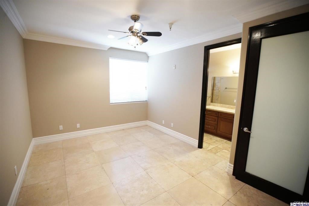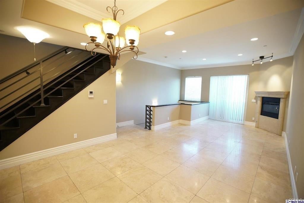 Built in 2009, this luxurious townhome style unit offers it ALL! Step into the split level floor plan with gleaming travertine floors throughout, high ceilings and an open flow living area from the living space to dining area. The balcony off the living room makes ideal for enjoying your morning coffee, or cozy up by the gas-log fireplace. Kitchen boasting granite counters, loads of cabinetry and a stainless steel stove, microwave, dishwasher and refrigerator. Private patio off the kitchen. A half bathroom off the main level makes it ideal for when having guest over. 2 spacious bedrooms, both with attached en-suite baths and the master offering a walk-in closet and private balcony with treetop views. Sky lights on the second level. BONUS Room on the lower level that's perfect for an office or art studio. Laundry area located in bonus room. Direct access from interior to your private 2 Car Garage. Intercom/Camera Security alarm ready. Conveniently located near all major freeways and just minutes to Ventura Blvd, where you can enjoy dinning, shopping and much more! Photos are not of exact unit, but same layout.