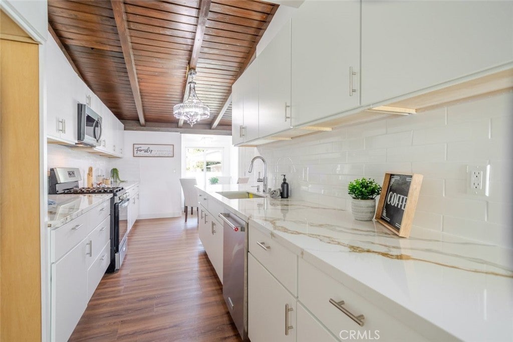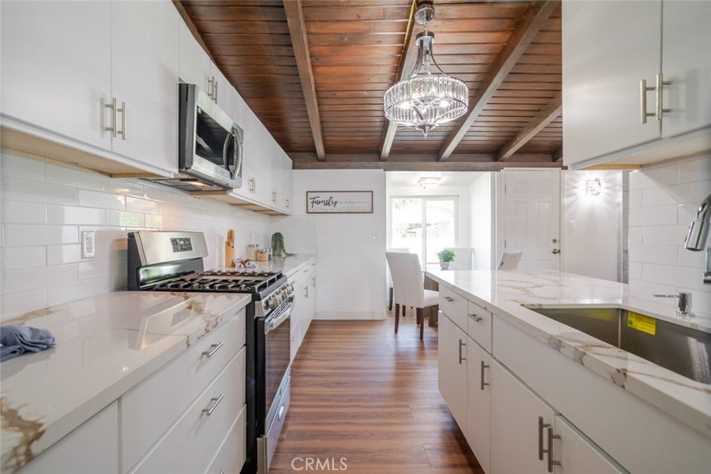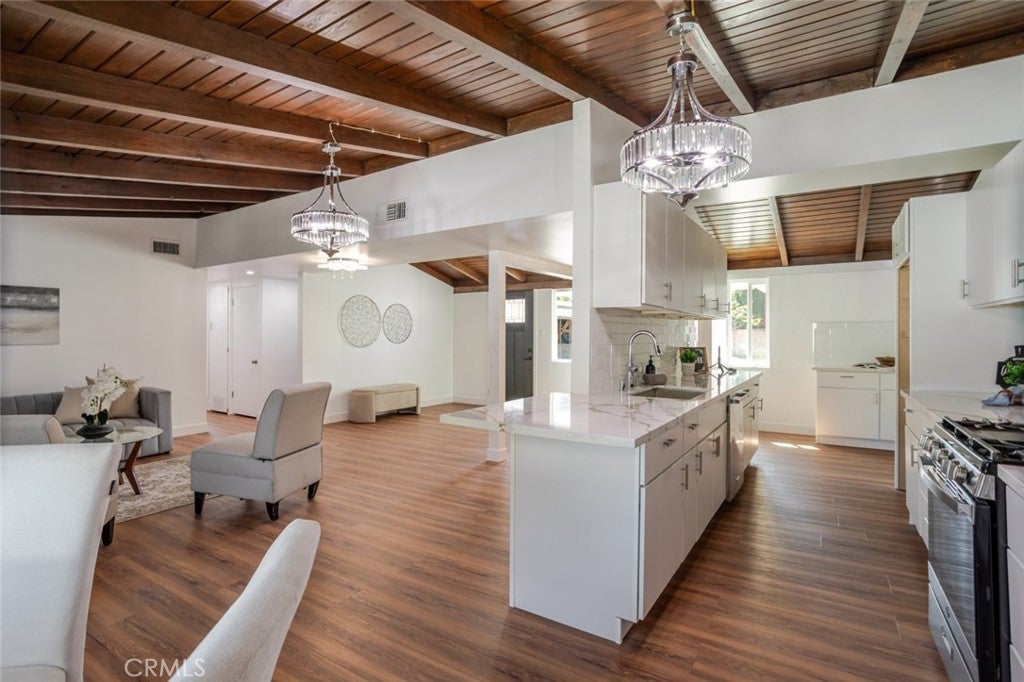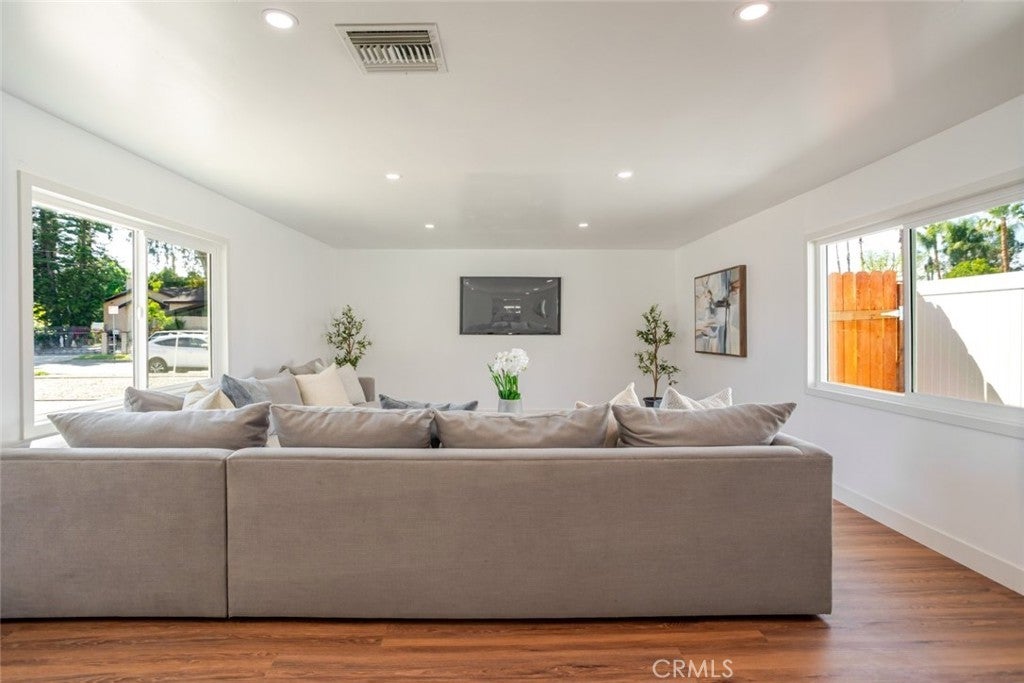 A fully upgraded Reseda home where modern sophistication meets timeless charm. This beautifully renovated three bedroom, two bath residence with a bonus room has been thoughtfully designed with high end finishes, sleek fixtures, and updated systems throughout, all fully permitted for complete peace of mind. Designed for both comfort and versatility, the home features two spacious living areas, offering the perfect layout for everyday living and effortless entertaining. Whether you are hosting gatherings, creating a media retreat, or enjoying quiet evenings at home, the flexibility of this floor plan truly stands out. Character and warmth are woven throughout, highlighted by a cozy breakfast nook, rich laminate flooring, and stunning wood beamed ceilings that add depth and personality. Every detail has been carefully curated to strike the perfect balance between contemporary elegance and inviting comfort. Outside, newly designed landscaping enhances curb appeal while creating welcoming outdoor spaces to relax, entertain, and enjoy the California sunshine. The property also offers excellent ADU potential, presenting an opportunity for additional income, multigenerational living, or expanded use of the space. Major upgrades including a new HVAC system, roof, and windows further elevate the home, making it move in ready. Ideally situated on a quiet, well maintained street, this home offers a peaceful neighborhood feel with convenient access to parks, shopping, dining, and major commuter routes. A rare opportunity to own a fully upgraded, fully permitted home with ADU potential, blending modern living, timeless appeal, and long term value in one of Reseda most desirable pockets.