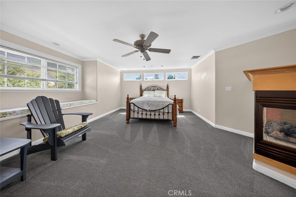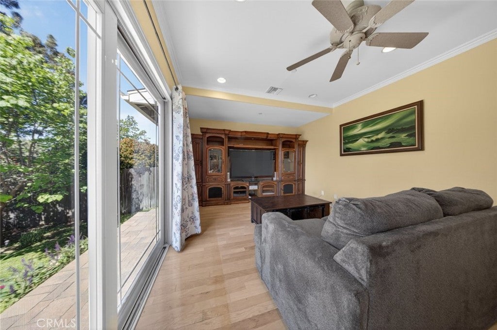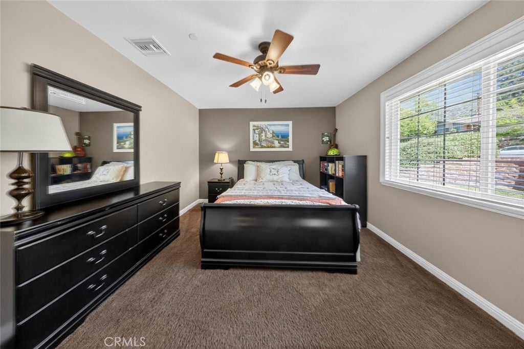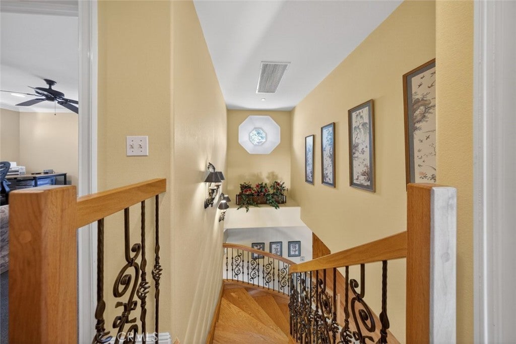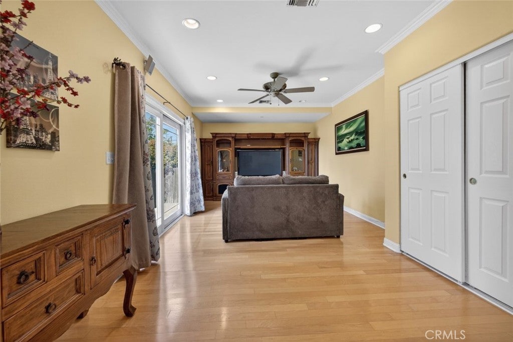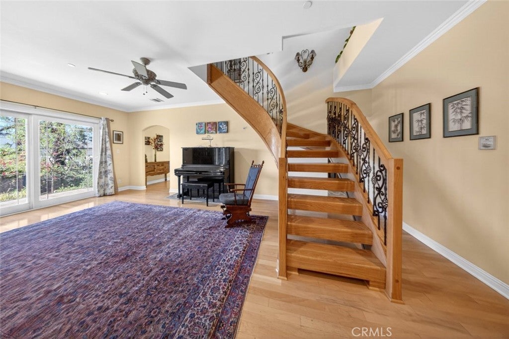 Welcome to this beautifully maintained two story home, set on a quiet cul de sac above Foothill in the heart of La Crescenta, one of the area's most sought after neighborhoods. A charming stone paver driveway greets you, providing both curb appeal and ample parking, accented by rose bushes and fruit trees. With 3,073 square feet of living space, this impressive home features 5 bedrooms and 3 full bathrooms. The layout includes 2 bedrooms upstairs and 3 downstairs. Upon entry, you are welcomed by an open living area highlighted by abundant natural light, warm wood flooring, recessed lighting, and a stunning curved staircase that serves as a striking architectural focal point. The living room features a fireplace and sliding doors that open to the backyard, further enhancing the bright and airy atmosphere. The family room offers an inviting space with a large entertainment center ideal for media and storage. The well appointed kitchen boasts ample cabinetry, generous island with seating, and a layout ideal for cooking and entertaining. Adjacent to the kitchen, the dining area showcases sliding glass doors that elegantly integrate the indoor space with the backyard setting. The generously sized primary suite offers a serene escape, with a fireplace, a large walk in closet, and a balcony overlooking the backyard with scenic mountain views. The primary bathroom offers a double vanity, a bathtub, and sunlit windows. Enjoy the private backyard, which includes a patio for dining and entertaining, a lush grassy area, scenic hillside views, and a dedicated dog run. Additional highlights include a 2 car attached garage, paid off solar panels for energy efficiency, and fire sprinklers. This home offers an exceptional location in the foothills of La Crescenta, close to award winning schools. Welcome home!