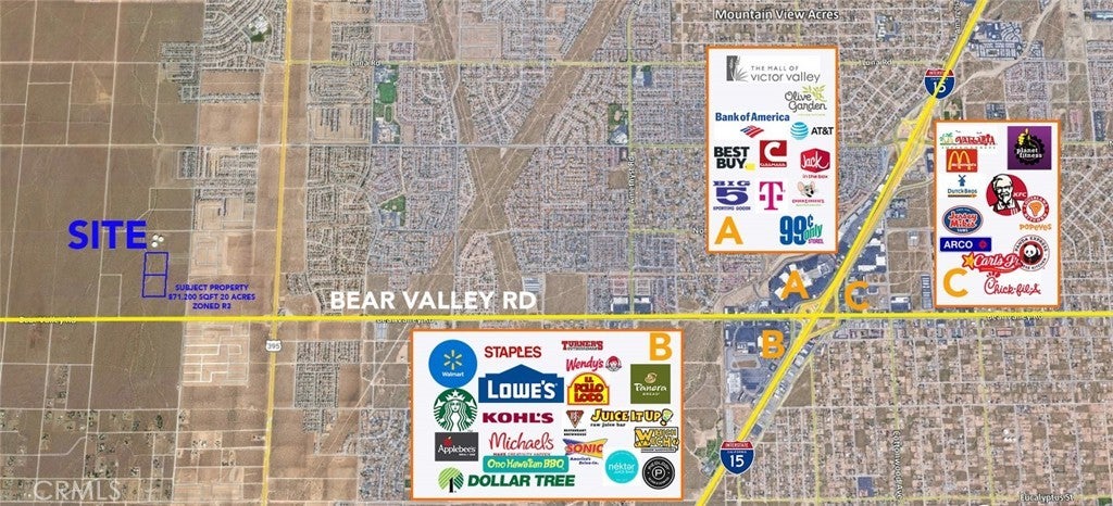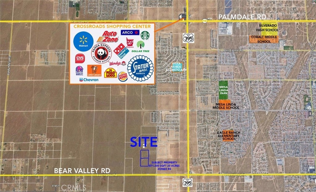 Two (2) parcels totaling ±20 acres – R3 Zoned Vacant Land. High density residential allowing for up 15 units per gross acre. Suitable for garden apartments, townhouses, duplexes and similar dwellings, including condominium developments. Situated on the south side of Lindero Rd 660 feet west of Mesa View Dr and 660 feet north of Bear Valley Rd. New Richmond Homes Community, Sole at Summerfield is coming out of ground just 1,100 feet to the northeast. Excellent location perfectly poised in the path of residential growth. Situated in the Snowline Joint Unified School District. Commuter friendly location in close proximity to US Highway 395 for those traveling south and State Route 18 for those traveling west. The Crossroads at Hwy 395 provides convenient shopping and consumer services just 2 miles to the north. There is a housing crisis in Southern California – many believe Victorville is the Solution.