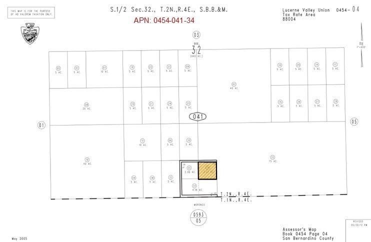 2.5 Acres (APN: 0454-041-34) GPS: 34.20435, -116.58946 This 2.5 acre corner lot is located in Pioneertown, CA. Discover the ultimate outdoor escape with property zoned for Resource Conservation (RC) in San Bernardino County. This unique zoning not only safeguards expansive open spaces but also invites a myriad of recreational activities. Whether you aspire to build your dream single-family home or yearn for a tranquil camping getaway amidst picturesque surroundings, this zoning offers endless opportunities for relaxation and outdoor excitement. Overhead electricity is approx 1.5 miles SE of the property. Residents have private water wells for their water needs, septic tanks for their sewer needs and propane tanks for their gas needs. Pioneertown, California, is a charming desert getaway near Joshua Tree National Park that feels like stepping into an Old West movie set. Built in the 1940s by Hollywood stars, it's filled with quaint buildings and dusty streets that once served as backdrops for Western films. Today, you can wander Mane Street and explore shops, galleries, and cozy cafes in buildings that have real Wild West history. Don't miss the Mane Stage, where live music and stunning desert views create unforgettable experiences. Pioneertown is where history meets entertainment, perfect for anyone seeking a taste of the Old West with a modern twist. The adjacent property is also for sale. This property does not yet have an address. While the boundary lines on the map offer a glimpse, they are only approximate. A Buyer should verify boundaries, zoning and utilities, ensuring every aspect aligns with their vision for the property.