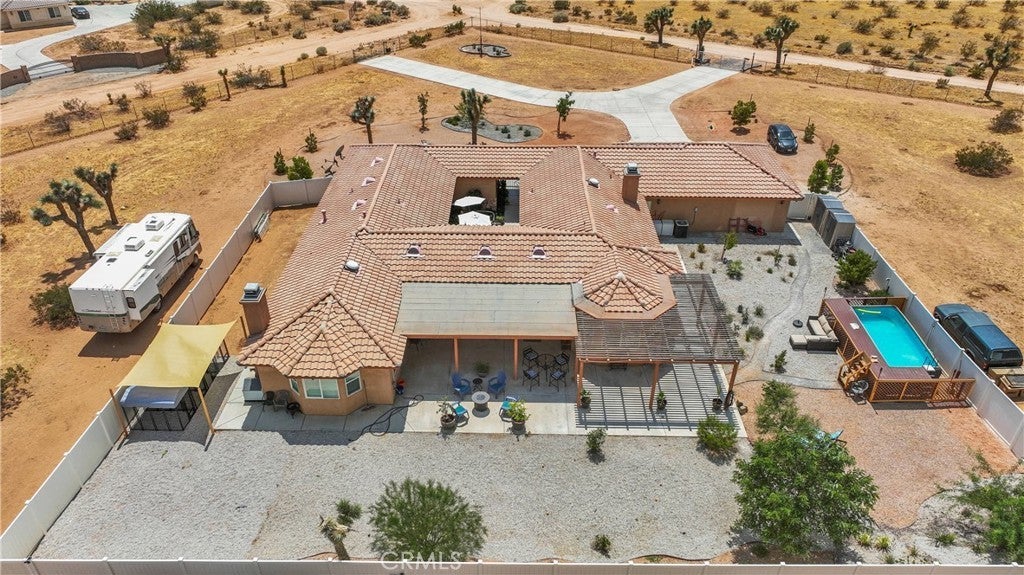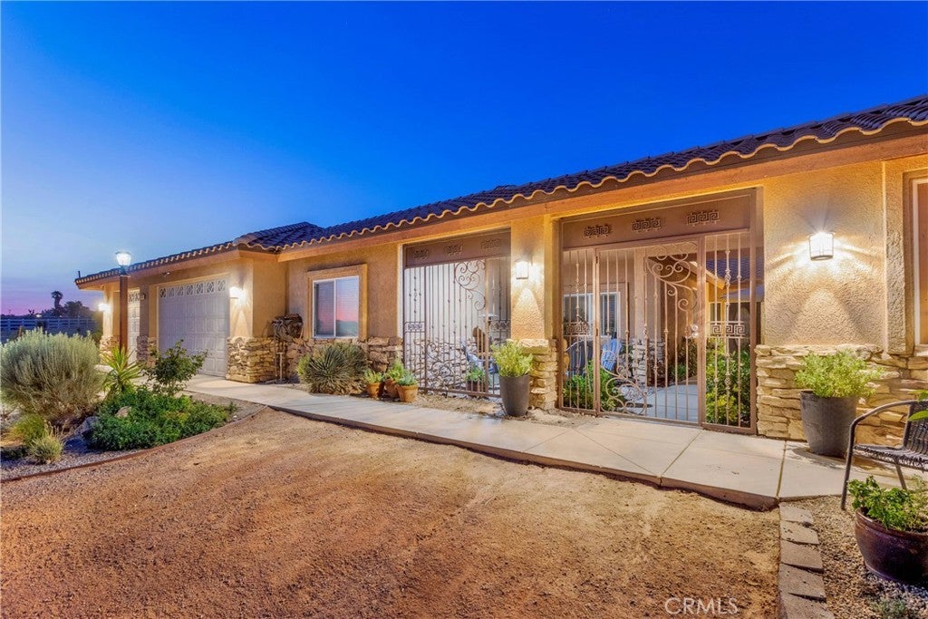 Are You Looking For a Luxury Desert Lifestyle?*Stunning City Light Views* Welcome to This Exquisite Custom Home in Apple Valley, Set on Just Over 2 Acres! Enter Through a Private Gated Courtyard that can be used as a Sitting or Garden Area. This Home Features Elegant Tile Flooring with Granite Accents. 4 Bedrooms and 2.5 Bathrooms, Boasting Over 3,100 SqFt, This Residence Offers Ample Space and Luxury. The Kitchen is a Chef’s Delight, Complete with Granite Countertops, a Bay Window Breakfast Nook, a Pull-Out Spice Rack, Trash Compactor and a Walk-In Pantry. The Living Room Includes a Mini Wet Bar with a Fridge and Glass-Fronted Cabinets, Perfect for Entertaining. Adjacent to the Kitchen there's a Formal Dining Area and Sitting Room. The Oversized Master Suite is a True Retreat with an En-Suite Including a Granite Fireplace. A Massive Walk-In Tile Shower with Dual Shower Heads, Dual Sinks, a Vanity and 2 Walk In Closets. Wide Hallway with a Library/Study Area that has Built-in Storage Benches along with a Workspace and File Cabinet. 3 Additional Spacious Bedrooms. Indoor Laundry Room just off the Garage. Step Outside to Enjoy your Covered back Patio with Ceiling Fans & Above Ground POOL! Perfect to Cool Down After a Nice Desert Day. Expansive 2 Acre Lot with Plenty of Space for All Your Needs and has Vinyl Cross-fencing for Added Privacy. Additional Features Include 3 Car Garage with Storage, a Whole House Central Vacuum System, Chicken Coop and This Property is on it's own *PRIVATE WELL* Only 0.2 Miles from the Paved Road, Great for Rural Living but Still Not too Far from Shopping. HWY 18 Sycamore Rocks Elementary School and Park is Close By, along with Granite Hills High School. Amazing Evening Views from This Property and Instant Desert Access for all your Off Road Adventures. Let's Make this Your New Desert Retreat Today!