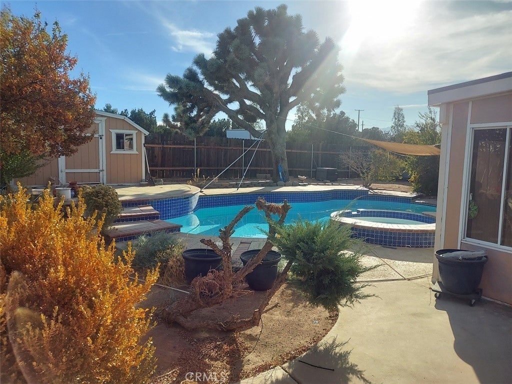 Wonderful home located in the desirable area of Oak Hills. Home has 3 bedrooms and 2 and a half bathrooms, large laundry room with lots of storage and access to the side yard. Home was rebuilt in 2021 due to a fire. Original year built 1988. Effective year built 2021. Almost everything was replaced in 2021 including: windows, doors, plumbing, electrical, drywall, cabinets, flooring, counters, A/C & heating, insulation and roof. Contractor did an excellent job with quality workmanship. Not many homes for sale with an effective year built as recent as this one. Center of the home has high vaulted ceilings, granite counter tops, stove, dishwasher and LVT flooring thru-out for easy maintenance. Beautiful cabinets in the kitchen and throughout the home. Primary bedroom has a large closet and bathroom suite. Upgraded ceiling fans in all rooms. Home has a pool and SPA and tile has been upgraded and a new pump installed for those fun summer days. Attached 2 car garage and a detached 2 car garage, a shed for extra storage. Plenty of room on this 2 Acre parcel to ride your quads. Sliding door which enters into a good size sunroom with access to the backyard. Wood burning stove is surrounded by brick and will be great for those cold desert nights. Solar was installed when the home was rebuilt and solar will be paid off in escrow. Solar is on the Net Energy Metering where you could receive credit from Edison if you system generates excess energy then what you use. Home is completely fenced all the way around the property and around the pool area. Home is on Septic and was serviced about 2-4 years ago. Don't miss this opportunity to live in a wonderful community in the High Desert!!