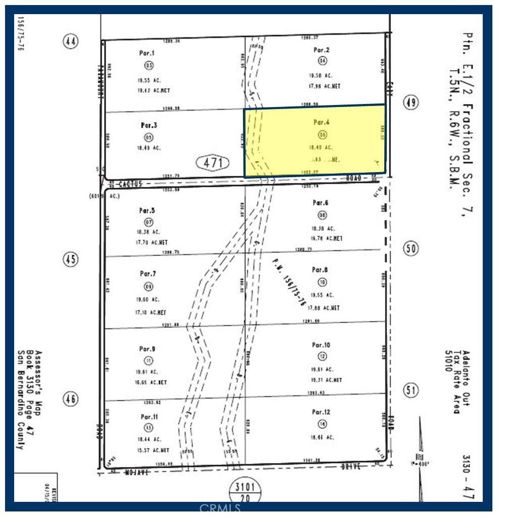 18.4 Acres (APN: 3130-471-06) GPS: 34.53587, -117.53889 This 18 acre property is located in Phelan, CA. According to the San Bernardino County the property is zoned as: [ ZONING ] Rural Living-5 Acre Minimum. This is a residential zoning that allows for single family homes and incidental agriculture. The property could be subdivided into 5 acre lots. The ADJACENT PARCELS ALSO FOR SALE. [ POWER ] Overhead electricity is available approximately 1.5 miles south. Residents in the area have private wells, a water line in available 1.5 miles south. Nearby homes also have septic tanks for sewer needs, propane tanks for their gas needs. Phelan sits along the base of the San Gabriel Mountains not far from Mountain High Ski Resort in Wrightwood, CA. The town center of Phelan sits along the intersection of Sheep Creek Rd and Phelan Rd. approximately 8 miles southwest of the properties. This property does not yet have an address, the address listed is for marketing purposes only. While the boundary lines on the map offer a glimpse, they are only approximate. A Buyer should verify boundaries, zoning and utilities, ensuring every aspect aligns with their vision for the property