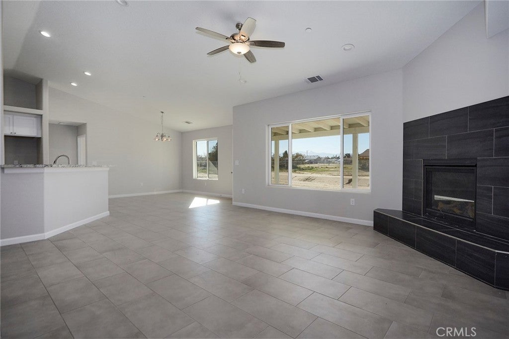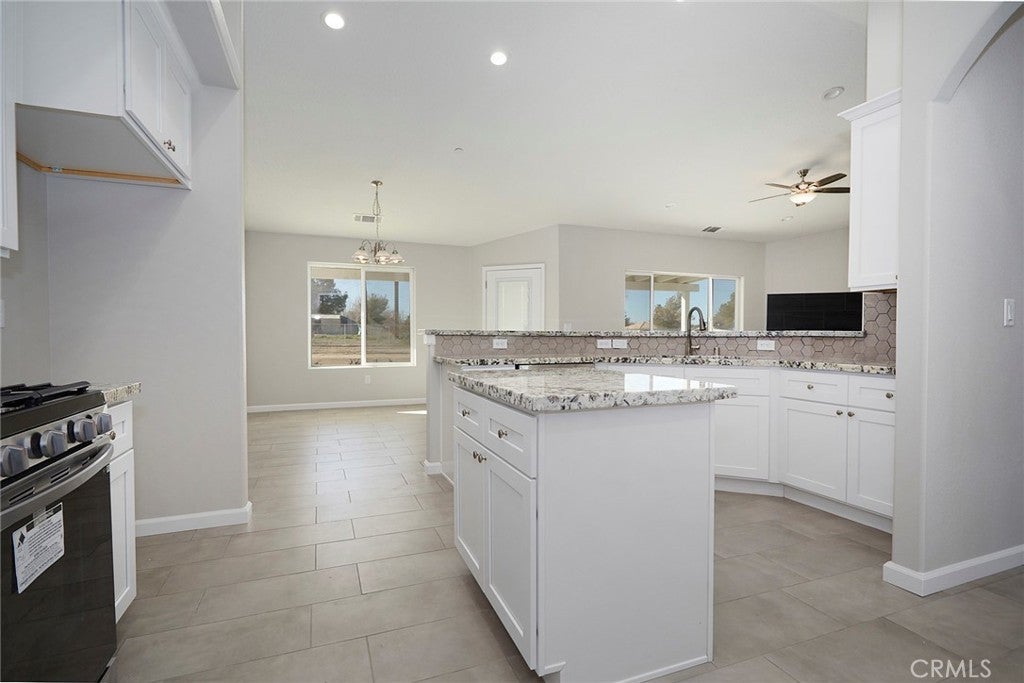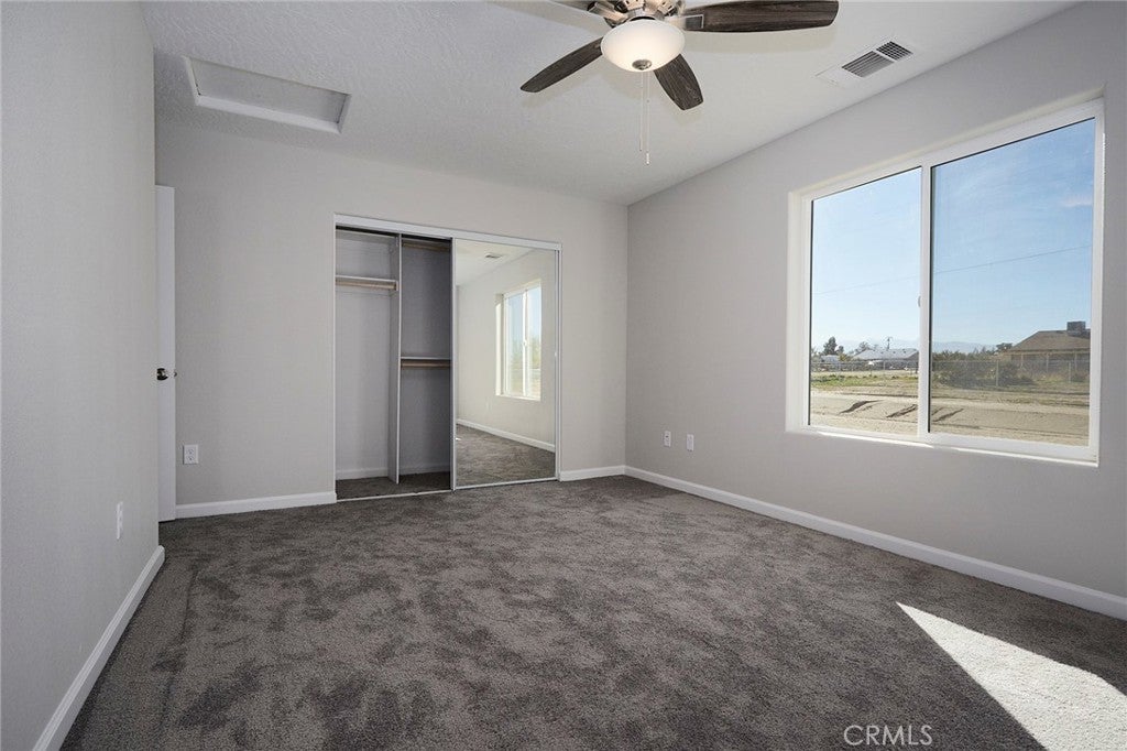 CHECK OUT THIS IMPRESSIVE NEW CONSTRUCTION HOME IN HESPERIA! This home offers approximately 2100 SF of amazing living space. Enjoy your kitchen with solid surface counters, functional cabinets, large pantry, center island and modern appliances. The gathering area is spacious and inviting. The split floorplan offers a comfortable feel with the main bedroom on one side of the house and with a bathroom to include dual sinks, separate tub and shower. The other bedrooms are off the hallway and are adequate in size and share a bathroom. Next to the indoor Laundry is also a half bath that is great for guests. There is a total of 4 Bedrooms and 2 ½ Bathrooms. Also, there is plenty of parking in the 3 car garage. Enjoy the desert weather under the covered patio overlooking a large lot. The property line goes beyond the fencing. Solar panels that are owned are included and installed at the minimum standards. Take a look at this Amazing Home!
