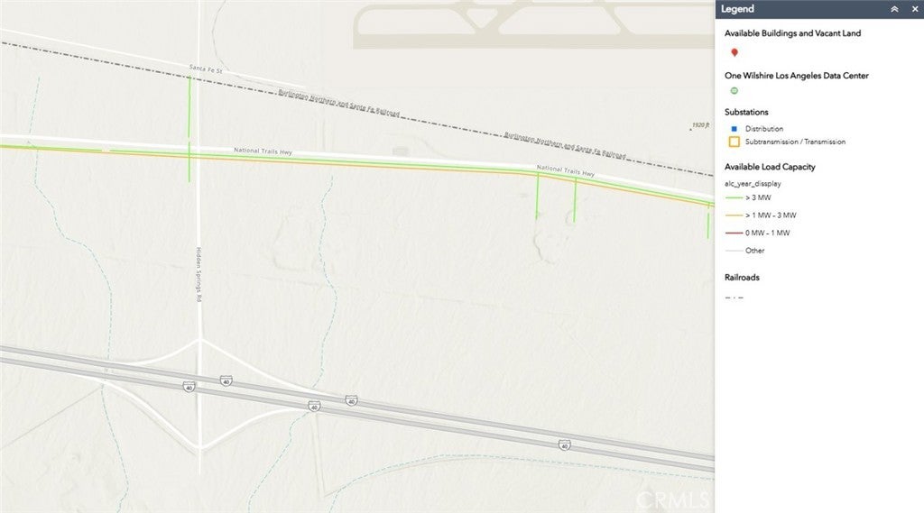 Seize this exceptional opportunity to acquire this ±107.08 acres located on the south side of Interstate 40, currently zoned for Rural Living with the possibility of rezoning to accommodate various development projects. The parcel is zoned as Rural Living, presenting a potential rezoning opportunity for industrial purposes, such as warehouse development. This region is experiencing a surge in transformative infrastructure investments. BNSF Railway’s $1.5 billion Barstow International Gateway project will bring a 4,500-acre integrated rail facility to the area, creating thousands of jobs and boosting logistics capabilities. Brightline West’s 218-mile high-speed rail connecting Las Vegas to Southern California—with stations in nearby Victor Valley—is set to launch by 2028. Additionally, the High Desert Corridor Project is advancing a new high-speed rail line to enhance regional connectivity and economic growth. With approximately 16,500 vehicles passing daily on Interstate 40 and Hidden Springs Road, the properties enjoy high visibility and accessibility—making them ideal for commercial ventures. The combination of prime location, zoning flexibility, and proximity to major transportation and infrastructure projects makes this an exceptional investment opportunity in a rapidly growing corridor. Please note this parcel is one of four available contiguous parcels, totaling 409.60 acres for sale.
