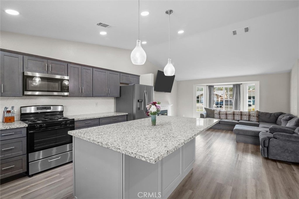 Welcome Home! Excellent opportunity to own this 3 bedroom 2 bathroom single story property. Open kitchen with island. Gorgeous counter tops and plenty of cupboard space. Recently updated with beautiful laminate flooring and bathroom fixtures. Water softener. New AC ducting. Paid off leased solar panels to save on the electric bills. Close to shopping, schools, and the picturesque Lake Elsinore. A must see!