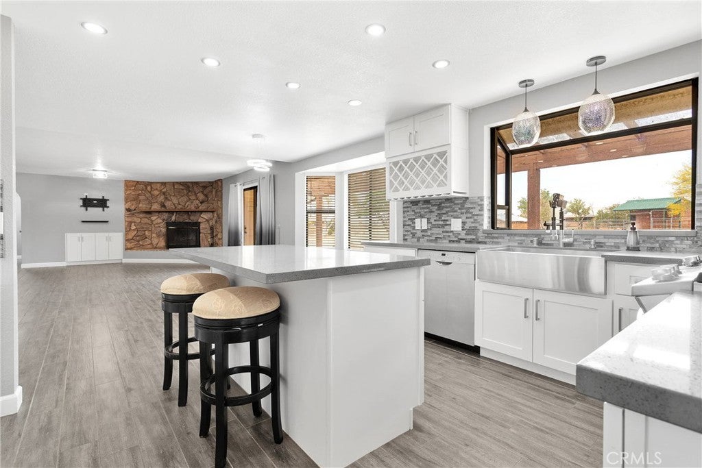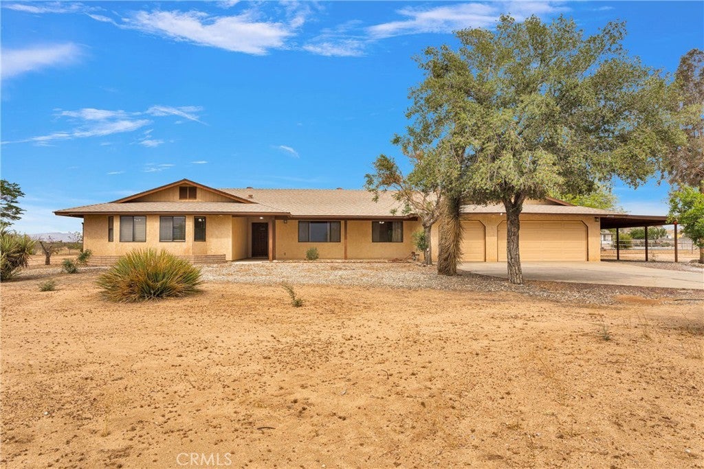 PRICE IMPROVEMENT! Septic tank & Well have already been certified - all ready for new owners. Appraisal came in OVER VALUE - FHA buyer can step into INSTANT EQUITY!!. Are you looking for a TURN KEY property on over 2 ACRES of land, away from all the city noise with beautiful MOUNTAIN VIEWS? Then this FULLY RENOVATED home is the one for you! Located in South Apple Valley, this neighborhood is known for peaceful, rural living! Inside this 2900+ sq ft home is 4 bedrooms, 3 full bathrooms, 2 living areas, multiple dining spaces, a HUGE bonus room, and a convenient in-door laundry room. The entire home has NEW CARPET, NEW WOOD-LOOK TILE, NEW CABINETRY, NEW PAINT, and NEW MODERN FIXTURES. The family room has a cozy wood burning fireplace and is wired with BOSE speakers. The Kitchen comes ready with stainless steel appliances, tons of cabinets for storage, an island and breakfast nook for additional seating and a dry bar/beverage station. Right off the kitchen is a HUGE BONUS ROOM that carries so much potential. This Bonus Room has a large closet and a bathroom right off of it that could be used for a guest room or potential 5th bedroom. It would also make a great GAME/REC/PLAYROOM or large home office. There is also direct access to the backyard from this space. The indoor laundry has a large utility sink, more cabinets for storage and a folding station. The master suite has HIS & HERS closests, a soaking tub, walk-in shower, double sinks and makeup vanity. Storage is not lacking! The hallway cabinets provide so much extra storage and each room has charming BAY WINDOWS with storage underneath. The roof was redone in 2024 and the Septic Tank was replaced in 2020. Some other great features include a WATER SOFTENER SYSTEM, TV WALL MOUNTS in almost every room, CENTRAL VAC, and water source is on its own PRIVATE WELL. The entire property is fully fenced with 2 large rolling gates for access. Through these gates you will find plenty of room for parking. Did I mention there is a 3-car garage AND covered carport? So bring all your toys, there is plenty of space for it all! Got horses or livestock? You're covered! These grounds come ready with a large arena, 60' round pen, 4 horse stalls, 2 shelter structures for livestock, a tack shed, storage shed and 20' shipping container. Approximately 10 minutes from groceries, shopping, and entertainment. Come check out all this property has to offer!
