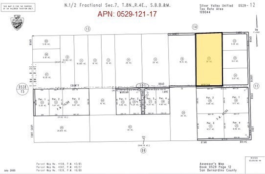 20 Acres (APN: 0529-121-17) GPS: 34.80387729, -116.59548433 This wonderful 20 Acres sits on Morgan Ln. in Newberry Springs, CA. Welcome to our property in San Bernardino County! It's located in the Rural Living zone, where you can enjoy the freedom of spacious 5-acre lots. This means you have the opportunity to subdivide the land into smaller 5-acre parcels if you desire. In this area, you have a wide range of possibilities for land use. Whether you're interested in building a single-family home, setting up a manufactured home, starting a small farm, running a produce stand, or even hosting agritourism activities, the Rural Living zoning has you covered. You can also keep animals, operate a small livestock farm, open a school or place of worship, establish a park or playground, or even run a Bed & Breakfast or residential care facility. With such flexibility and opportunities, this property offers endless possibilities for your dream lifestyle or business venture. Electricity is readily available along the southern property boundary and Morgan Lane. Plus, residents in the area take care of their water, sewer, and gas needs with private water wells, septic tanks, and propane tanks respectively. So, you can enjoy convenience and independence in managing your utilities on this property. Discover the tranquility of Newberry Springs! Nestled in serene landscapes, this hidden gem offers a peaceful getaway from the hustle and bustle of city life. You'll be captivated by the breathtaking views of the Mojave Desert, with its mesmerizing sunsets and starry nights that draw in stargazers and nature lovers alike. Don't miss the chance to visit the iconic Bagdad Café, a historic roadside attraction that has been featured in movies and is a must-see destination for travelers passing through. With its rustic charm and natural beauty, Newberry Springs provides a serene retreat for those craving an authentic desert experience.