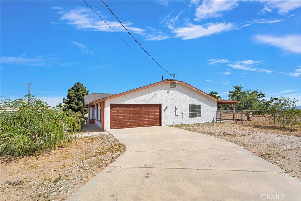 Renovated Home with Huge Bonus Room on 4 Acres with Massive Garage/Workshop! Welcome to this Newly Renovated 2,546 sq ft home offering 3 bedrooms, 2.5 baths, PLUS a Large Bonus Room with a Closet—perfect for a Game Room, Home Office, or easily converted into a 4th Bedroom. Situated on approximately 4 acres on a Corner Lot, this Property Offers Endless Possibilities, Space, and Privacy. Enjoy Fresh Interior & Exterior Paint, New Flooring, Stylish Fixtures, Ceiling Fans throughout, and Newer High-End KitchenAid Appliances. The family room features a Cozy Wood-Burning Stove, while the primary suite boasts a Double Door Entry and its own Fireplace for added Warmth and Charm. The Roof, Heating & AC, and New Ducting were Replaced in 2017. The Backyard Includes a Huge Covered Patio that spans the Entire Length of the Home, Perfect for Entertaining. Roughly Half the Lot is Fenced and Cross-Fenced with a mix of Vinyl and Chain Link. For the Hobbyist, Car Enthusiast, Truck Drivers or RV Owners, this property includes a 2011 Empire Steel 60’ x 50’ Detached Garage with Electricity, Skylights, a Man Door, and Two Oversized Roll-Up Doors Large Enough for RVs or Big Rigs. Conveniently located just 6 miles to Shopping, Dining, Banking, the Gym, the I-15 Freeway, and just approximately a 0.25 mile off pavement, within the sought-after Snowline School District, this property is the Perfect Blend of Rural Living and Everyday Convenience. It’s a Must See, this home could be Your Next Home!