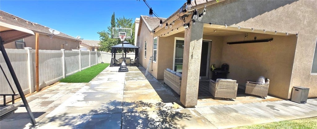 Don't miss out on this meticulously cared for 4 Bedroom and 2 Bathroom bright, open and vibrant home. Enjoy the convenience of an attached 2 car garage and interior Laundry Room. The open concept showcases the Dining area, Family Room and Kitchen. With tile floors and new paint throughout this home is ready for move-in. Top notch appliances and fixtures make for a real show piece. Both the front and rear yards are beautifully cared for, including automatic irrigation. The Back yard has extensive concrete slabs and a patio and gazebo for family entertaining and RV access. This is a must see!!