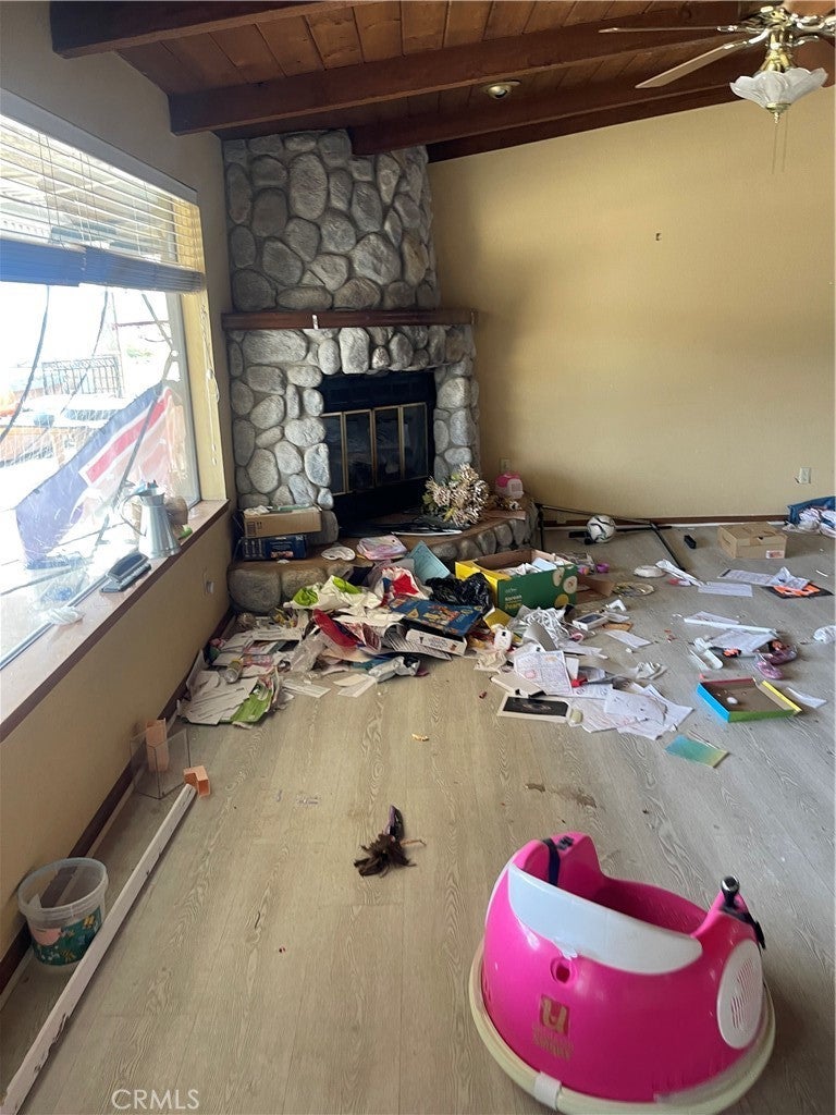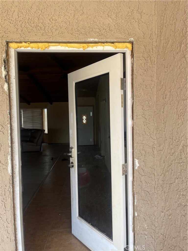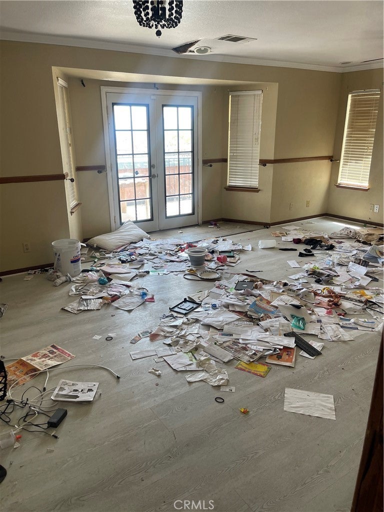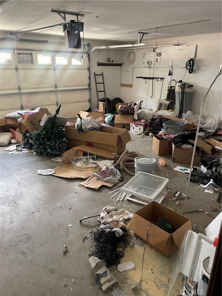 Investment Property. Over 1 acre of opportunity with 2,300+ sq ft, 3 bedrooms, and 2.5 baths. Vaulted ceilings, hardwood-style laminate flooring, custom-tiled master shower, and ceiling fans throughout. French doors from the master open to the backyard. Slumpstone-walled pool area secured by a safety gate. Detached three-car garage/workshop with strong ADU potential. Long concrete driveway, tile roof, fully fenced lot. Property is structurally sound but requires clean-out and some TLC. Ideal for investors seeking value-add potential.