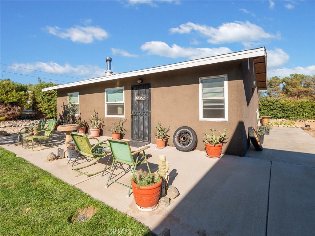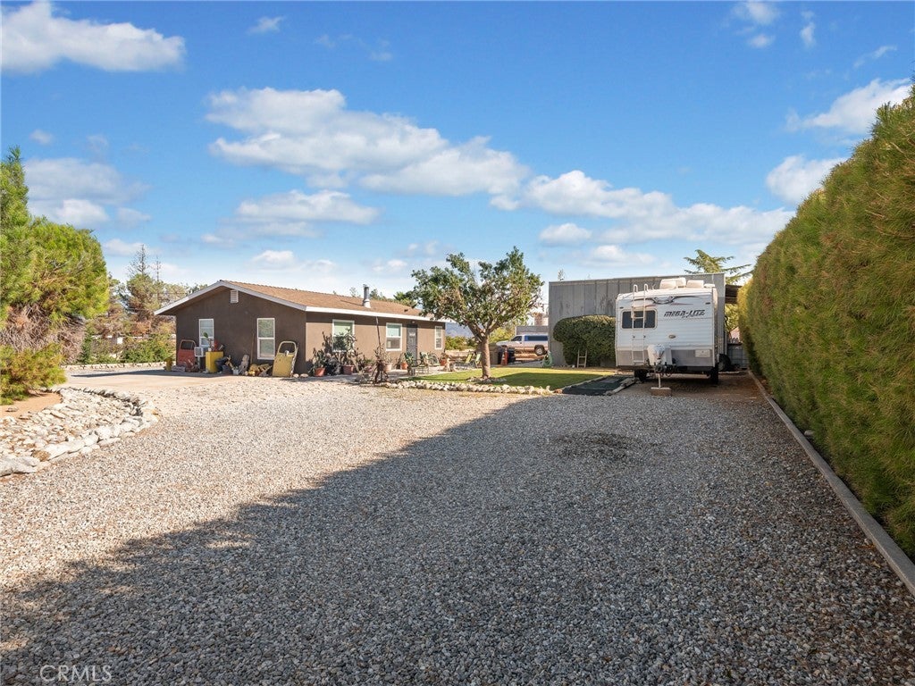 Welcome to this move-in ready, meticulously maintained home situated on nearly a half-acre lot. This property features 2 bedrooms, 1 bath, nice kitchen with PRO Appliances, granite countertops, Soft Touch closing cabinets. The home offers Marble, Laminate, and Carpet flooring, double paned windows, a wood-burning heater, and a tankless water heater for enhanced comfort and efficiency. Conveniently located near Ranchero Road with easy freeway access, this residence is close to schools, shopping, and local amenities. With so much to offer, this home is a must see-schedule your private showing today. Detached two car garage features a full bath. Garage and block wall are not permitted. Home sold as is. Security System Hardware belongs to seller, it does not stay. New owner may continue Security System Service and get new hardware.
