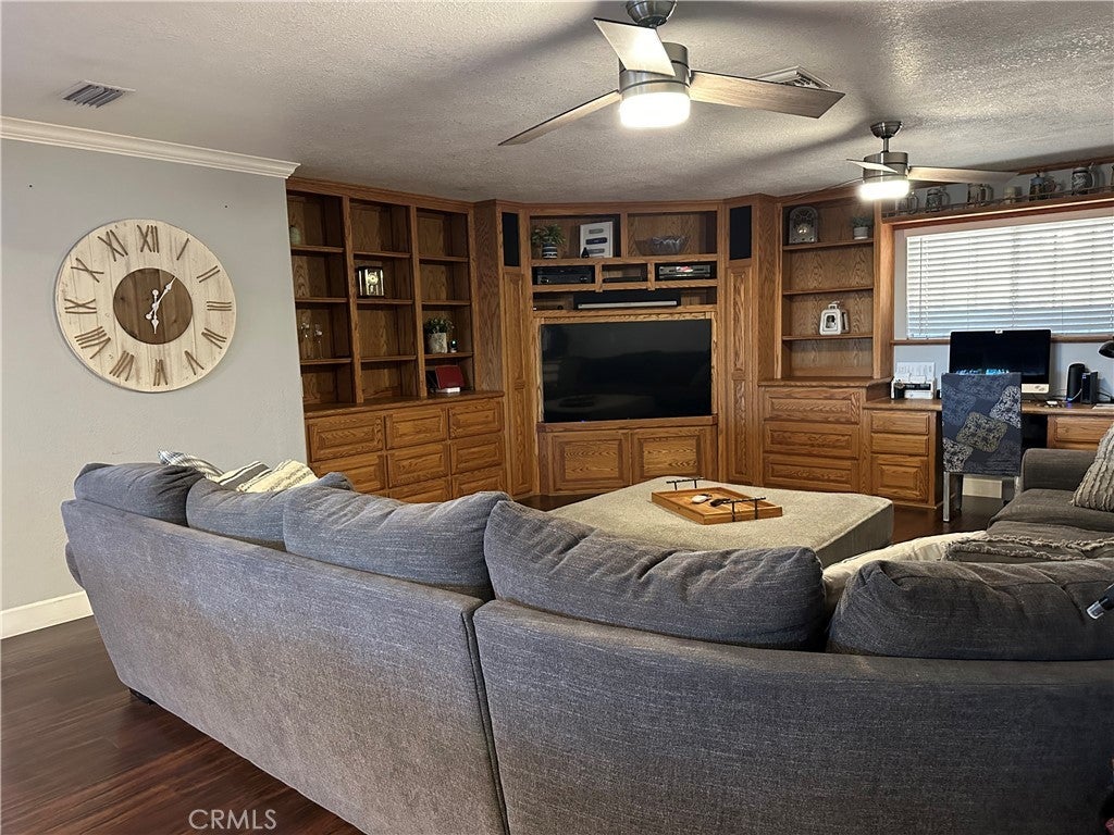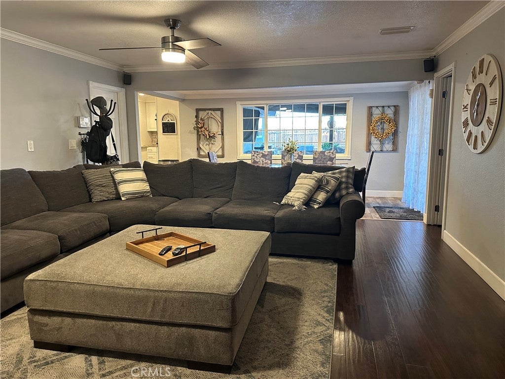 Welcome to this well-maintained, one-owner 3-bedroom, 2-bath home featuring thoughtful custom touches throughout. Upon entry, you're greeted by beautiful wood flooring leading into the formal living room, highlighted by a picture wall and expansive city views. The elevated kitchen offers a built-in double oven, five-burner stovetop, microwave, and a charming built-in hutch/coffee bar with a butcher block countertop. A kitchen window overlooks the covered backyard porch, and a spacious island with seating for four makes casual meals easy and convenient. Enjoy larger gatherings in the dedicated dining area, adjacent to a cozy den featuring custom cabinetry for storage and media. Ceiling fans are included in all bedrooms and den (excluding the living room). Home includes 1 full bath and 1 three-quarter bath. The private backyard is fully fenced and includes a covered patio with TV hookup, ideal for relaxing or entertaining. There's also ample space for RV parking or future additions. Don’t miss this opportunity to own a spacious, move-in ready home with unique features and a layout perfect for everyday living and entertaining. Schedule your private showing today!