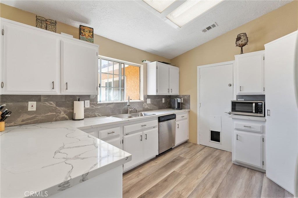 Beautifully Updated Home on Spacious Lot in Central Hesperia! Welcome to 18125 Hackberry St – a nicely updated 3-bedroom, 2-bathroom home that blends comfort, function, and convenience. Inside, you’ll find tasteful upgrades throughout, including an inviting kitchen that’s been modernized to meet today’s lifestyle. Adding even more space, this home features a 350 sq. ft. bonus/game room attached to the back of the garage – perfect for entertaining, hobbies, or a playroom. As another bonus you get, a clean, detached garage/workshop with roll-up door and electricity offers the ideal setup for projects, storage, or extra parking. Sitting on nearly three-quarters of an acre, the property provides plenty of room to spread out. Its location near “I” Avenue gives you a central spot for quick access to shopping, dining, schools, and the I-15 freeway – making it easy to get anywhere in the High Desert. This is a move-in ready home with all the space and amenities you’ve been searching for – both inside and out!