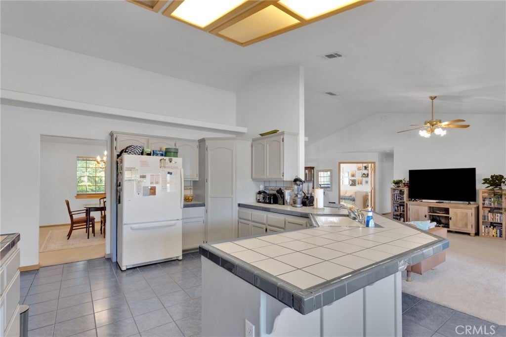 • Interior FeaturesCeiling Fan(s), High Ceilings, Open Floorplan, Pantry, Tile Counters, Walk-In Pantry
