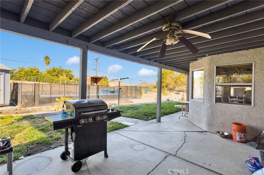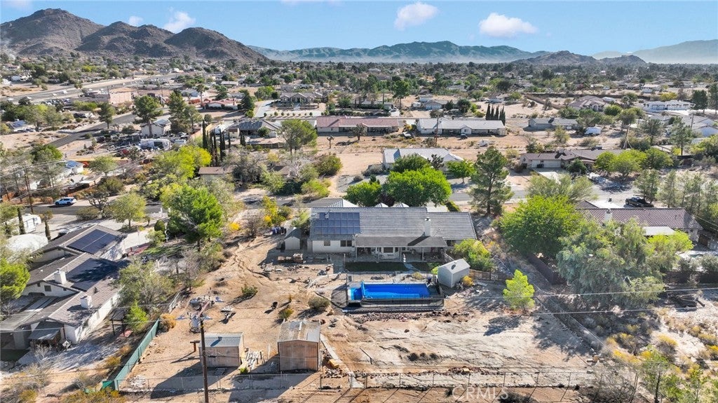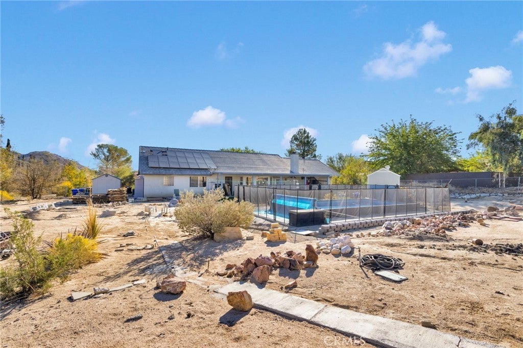 !!!!PAID SOLAR!!!! Welcome to this beautifully maintained 4-bedroom, 2-bathroom home nestled in the sought-after Desert Knolls community of Apple Valley. Spanning 2,396 sq. ft. on a generous 0.76-acre lot, this home perfectly balances comfort, space, and style — ideal for family living and entertaining. From the moment you arrive, you’re greeted by lush front landscaping featuring mature trees and a manicured lawn, creating a warm and inviting curb appeal. A three-car garage, RV access, and drive-through driveway provide ample parking and storage. Step inside to find high ceilings and two living areas — a formal living room and a cozy family room complete with a fireplace and a formal dining area. The open-concept kitchen features a breakfast nook, breakfast bar, double oven, stovetop, dishwasher, pantry, coffee bar area, and plenty of cabinet space. The split floorplan ensures privacy and functionality. The primary suite is a spacious retreat, featuring a walk-in closet and an en-suite bathroom with a separate soaking tub, walk-in shower, and dual sinks. One of the additional bedrooms can easily serve as a bedroom or a home office, while the remaining two bedrooms are generously sized, each with walk-in closets. The second bathroom includes a shower/tub combo.The dedicated laundry room is thoughtfully designed with plenty of cabinetry, a deep utility sink, countertop space, and direct backyard access. Step outside to your private oasis! Enjoy the spacious covered patio, three storage sheds, and a newer in-ground pool with a secure safety fence with desert and mountain views. Whether you're entertaining guests or enjoying a quiet morning coffee, this backyard has it all. Additional features include solar panels for energy efficiency and cost savings. Located just minutes from Highway 18, this home offers convenient access to shopping centers, schools, parks, St. Marys hospital, and restaurants, making it a prime location for comfort and convenience. Don’t miss your chance to own this incredible pool home in one of Apple Valley’s most desirable neighborhoods. Schedule your private tour today!