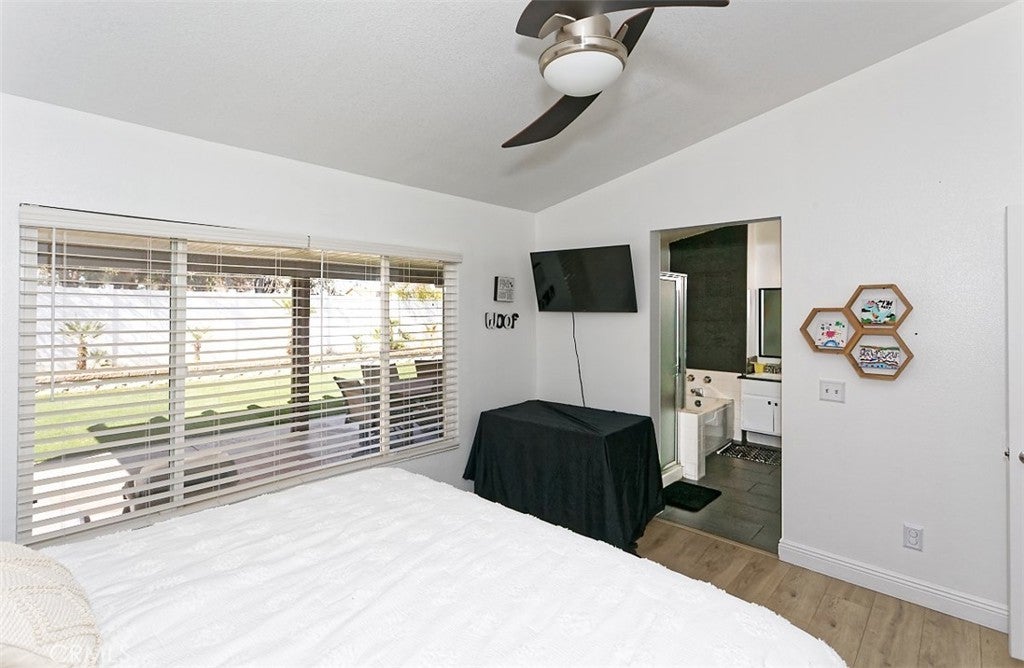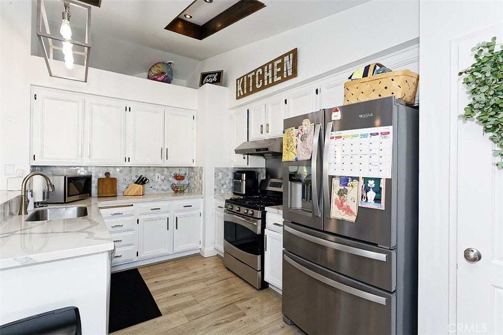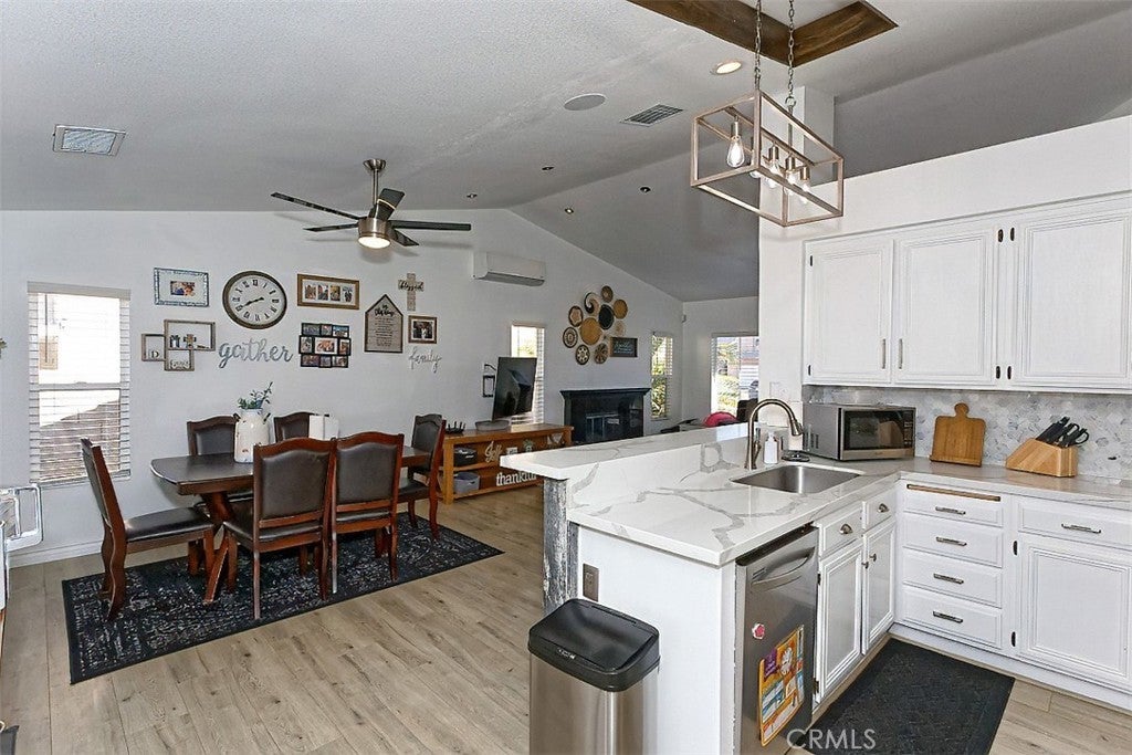 Beautiful updated home quartz counters in Kitchen as well in the bathrooms with beautiful back splash. New laminate flooring throughout. Paid solar and Ductless /A with central air. The Backyard features a beautiful, covered patio and artificial turf which never needs mowing. This home is move in ready waiting for you. Close to shopping and freeway.