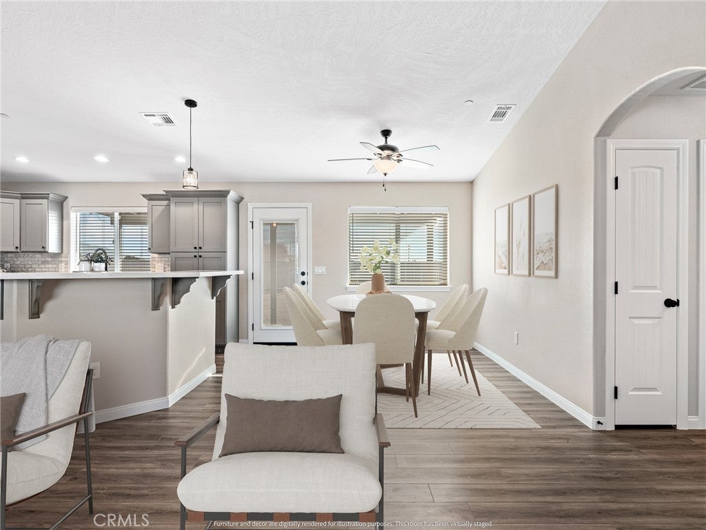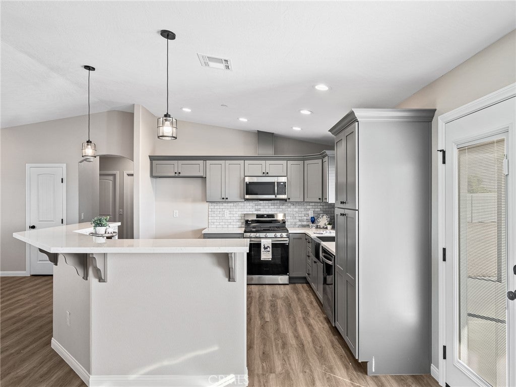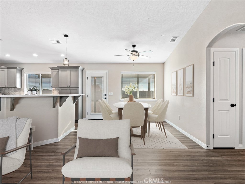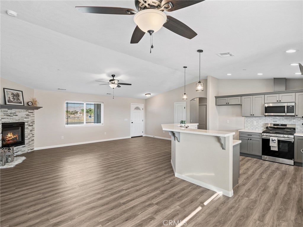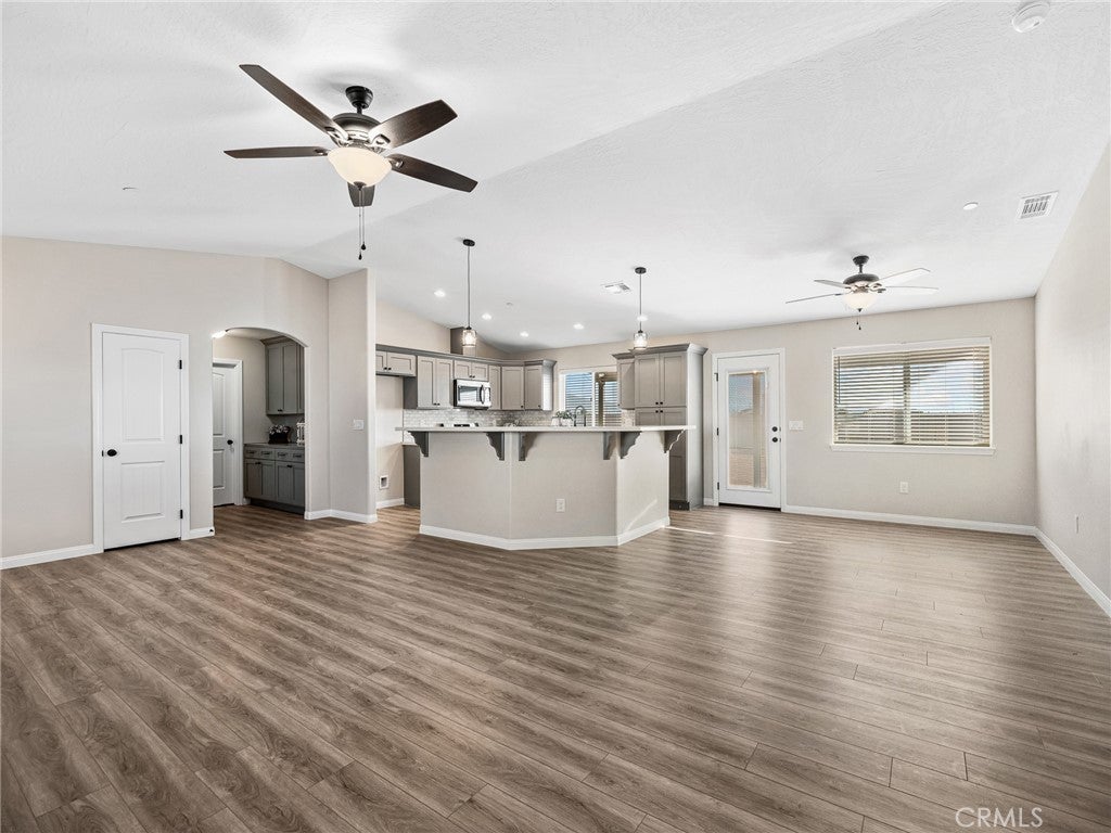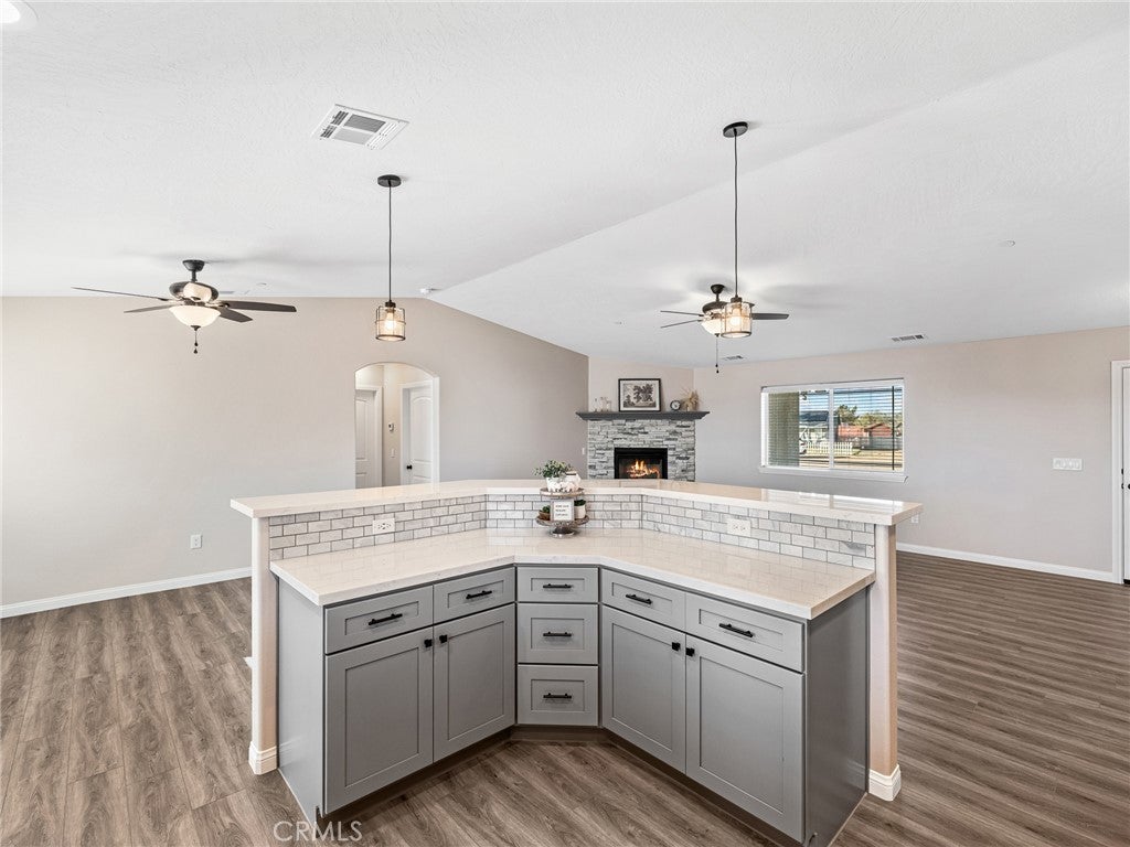 • Interior FeaturesBar, Main Level Primary, Bedroom on Main Level, Ceiling Fan(s), Eat-in Kitchen, Quartz Counters