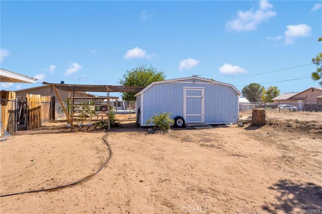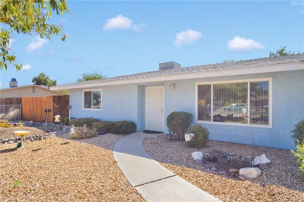Welcome to this beautifully updated three-bedroom, two-bathroom home nestled in the heart of Apple Valley's peaceful desert community. This thoughtfully designed residence features a split floor plan with an open concept that seamlessly connects the living spaces, creating an ideal environment for both daily living and entertaining guests. The home showcases numerous recent improvements that enhance both comfort and efficiency. A freshly painted exterior welcomes you to a property that has been meticulously maintained, complete with a new roof, new windows, and an updated guest shower. Inside, you'll appreciate the modern conveniences of smart technology, including a wireless garage door, thermostat, and stove that bring contemporary living to this charming desert retreat. The living room serves as the heart of the home, featuring attractive laminate flooring and a cozy wood-burning insert that provides warmth during cooler desert evenings. The completely fenced property offers exceptional outdoor living opportunities with a covered patio perfect for year-round enjoyment and a spacious yard that provides ample room for a future pool and recreational vehicles. Practical amenities include convenient recreational vehicle access and two electrical-equipped sheds for additional storage. The generous lot size truly sets this property apart, offering endless possibilities for desert enthusiasts who enjoy outdoor activities and entertaining. Located in a family-friendly neighborhood with easy access to local parks, shopping, and schools, this home combines the tranquility of desert living with modern conveniences. The established community provides a perfect balance of peaceful residential living while maintaining proximity to essential amenities and recreational facilities.