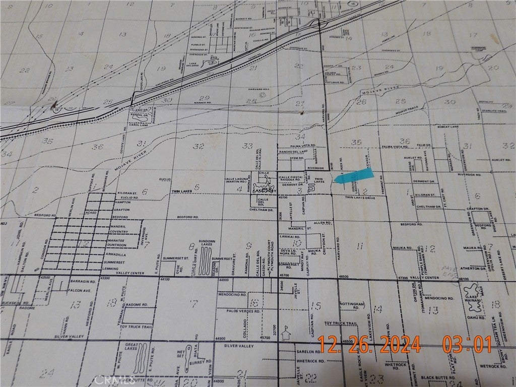Nice 10.32 acre parcel located on Harvard Rd in Newberry Springs. The property is on the NW corner of Harvard Rd & Derwent Rd. Dimensions of the lot are approximately 340 feet' on Harvard Rd by 1320 feet on Derwent Rd. Electric power lines run down the west side of the property. Buyer would need to check with the Electric Company to verify availability. Homes in the area require their own well and septic system.