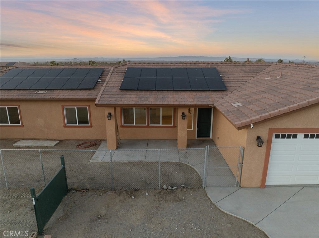 Like-New Home on ±2.2 Acres of Horse Property in Phelan! Experience the peace and beauty of country living in this nearly brand-new custom home situated on ±2.2 acres of fully usable horse property. Enjoy breathtaking views of snow-capped mountains and local wildlife right from your patio — all while being just minutes from town conveniences. This stunning home features PAID-OFF SOLAR, Electric panel upgrade and electric vehicle charger plug, a tile roof, and a 3-car attached garage with 8-foot doors, designed with quality and attention to detail throughout. Step inside to a bright and open floor plan showcasing fresh paint, new light fixtures, wood-look tile flooring, new carpet in the bedrooms, tray ceilings, LED lighting, and tall baseboards. The gourmet kitchen is an entertainer’s dream with a massive island, quartz countertops, brand-new stainless-steel appliances, and a designer tile backsplash. There are 4 spacious bedrooms and 2.5 bathrooms, including three rooms with walk-in closets. The separate indoor laundry room offers built-in storage and quartz counters, plus an indoor sprinkler system for added peace of mind. The primary suite feels like a private retreat, featuring dual sinks, modern fixtures, and an oversized spa-style tile shower with dual shower heads and a relaxing rain feature. Additional highlights include a tankless water heater, cross-fenced yard, fruit trees which includes peaches, apples, pomegranate, olives, and plums, painted garage floors, large storage shed, and recently completed septic certification — all within the highly desirable Snowline School District. Come see this exceptional home in person — you’ll instantly picture yourself making memories here for years to come!