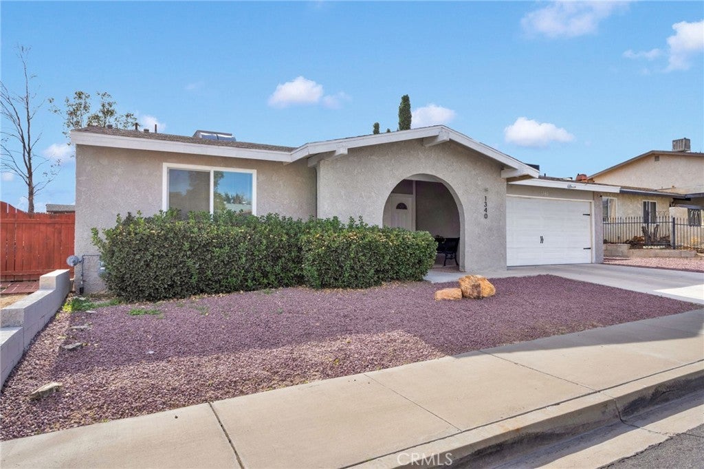 Welcome to this well-kept super clean 3 bedrooms, 2 bathrooms plus an office home that is strategically located close to the I-15 and I40 to travel locally or out of town. Great neighborhood and ready for you to move-in. The beautiful front yard is rocks caped, with low-maintenance enhancing the front porch. As you walk in to the double-door entrance you are greeted by the tile floor entry that opens up to the vaulted-ceiling in the living room, with lots of natural light, and wood laminate flooring and fireplace in the living room that enhances the setting. There is a convenient home office or work from home area with ceiling fan! The window in the living room was replaced by the previous owner that also kept this home so well maintained. The living room opens up to a very spacious kitchen with a door to the two car garage. All of the bedrooms have laminated wood flooring and ceiling fans. This move-in ready home also offers solar panels that will need to be assumed by the new buyer and save on electricity bills while allowing to keep that in the summer. This home also offers a covered patio and is nestled in a 7,200 square feet lot. Commuter friendly , close to local shopping centers , schools and if you want to travel take the 15 north to Las Vegas, the I40 east to Arizona, the 15 south to all cities down bellow all the way to orange county, or west via the 58 to Palmdale or Lancaster or northern CA.