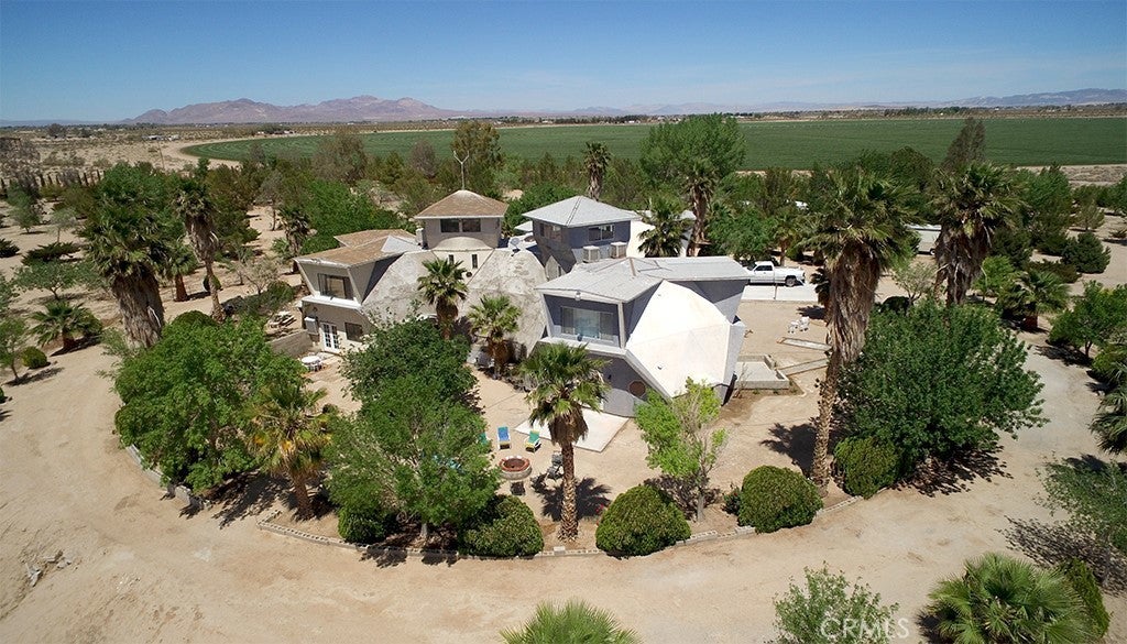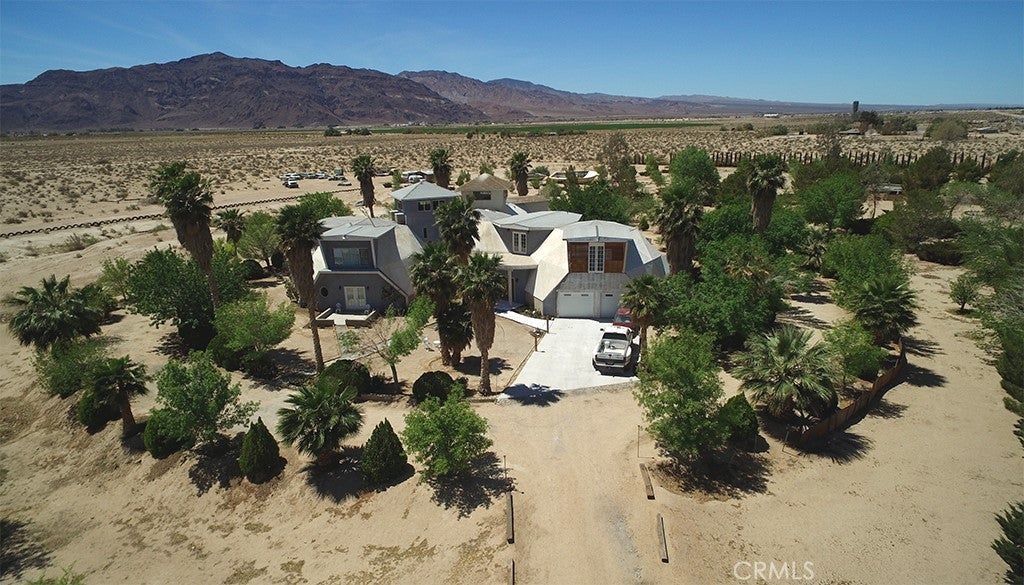 This is a RARE opportunity! This unique dome home is a registered historical landmark. It has over 9000 sq. ft on 40 acres fenced! 4 domes & 2 towers, plus HUGE attached garage! 4 massive bedrooms, each with their own bath, plus 1 guest bath downstairs. Large living room, separate family room, formal dining room, library and game room. Large kitchen with lots of counter and cabinet space. Laundry room and 3 storage rooms. 4-car garage with 1100 sq. ft. above the garage for work or craft room. Driveway wraps around the property. 5 evap coolers for summer. Enclosed front porch, Fire pit, and large outside deck. 10 acres fenced with 900 fruit, nut & shade trees - and full water rights. Playground in the side yard, plus open yard on all four sides of the property. There is also a 2 BD, 2 BA manuf home that could be a rental unit. Additional building in back currently used as a workshop with fully functional bathroom. This property to be sold as is - work is continuing inside and outside for improvements and upgrades. This is TRULY a unique property. Owner planned to have a bed and breakfast and nursery. However, possibilities are endless. Could also be an RV park with plenty of room to park more than 100 RVs - income opportunity! Very near the 40 freeway, less than 1/4 mile from Newberry Road.