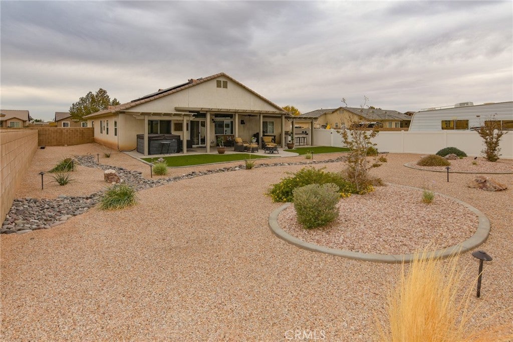 Beyond the Curb, A Hidden Paradise on Fresian From the moment you pull up, you’ll know this home is something special, but what’s waiting beyond the front is even better than you imagined. Tucked in a quiet Apple Valley neighborhood, this stunning four-bedroom, three-bath home is filled with space, beauty, and surprise around every corner. The curb appeal is just the beginning, with beautifully manicured landscaping, a wide driveway, and gated access to the backyard. Out back, you’ll find a private, fully fenced paradise, complete with soothing landscaping, a patio cover that stretches the entire length of the home, a huge storage shed, and a spacious, inviting hot tub for relaxing evenings under the stars. Inside, everything has been pristinely maintained and thoughtfully updated with fresh paint, new flooring, and a layout that flows with ease. The kitchen is jaw-dropping! Modern, spacious, and ready to host your next gathering, while the oversized family room opens seamlessly to the backyard for that perfect indoor-outdoor feel. The split floor plan features a Gigantuous primary suite on one side of the home, offering peaceful privacy, while the other wing includes two generous bedrooms and and full bathroom and a third mini master with its own bathroom. This is one of those homes where every inch has been cared for, and every space offers more than meets the eye. Additionally you will have paid for solar and the ability to assume a 2.75% loan! Come experience the “wow” for yourself.