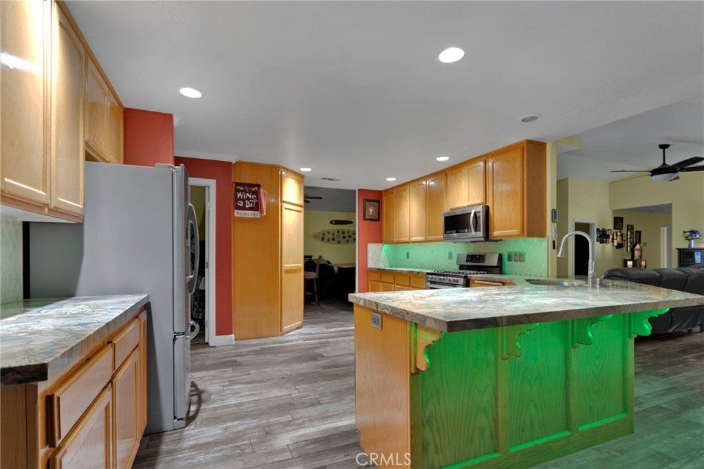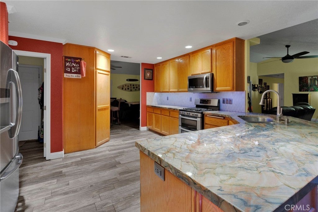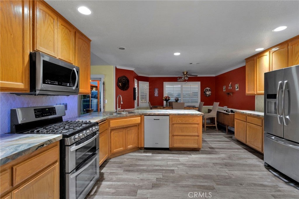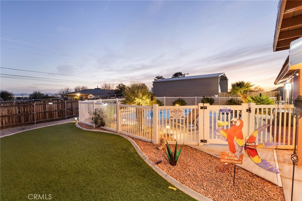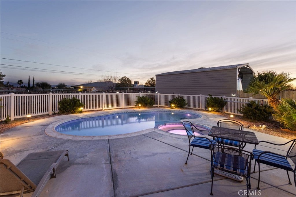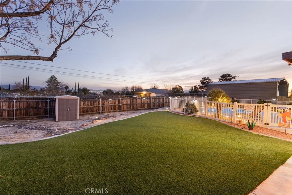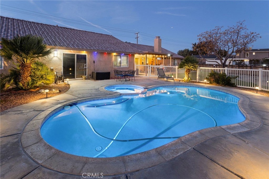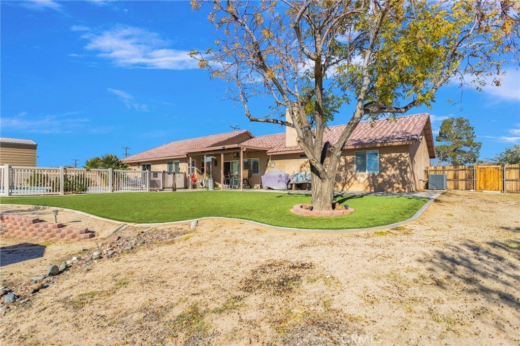 Experience elevated desert living in this exceptional 4-bedroom, 2-bath luxury pool home, showcasing over 2,500 sq ft of upgraded elegance on a beautifully utilized .68 acre lot in Apple Valley. Designed for both comfort and sophistication, the property features a three-car attached garage, fully fenced and cross-fenced grounds, and a permitted 16' x 35' covered RV storage complete with a concreted RV pad—a rare amenity at this level. Inside, refined upgrades create an immediate sense of quality. Enjoy tiled flooring throughout (carpet in the bedrooms only), new 4-inch baseboards, plantation shutters, and the convenience of an indoor separate laundry room. The chef’s kitchen is a true highlight, boasting Italian granite countertops and an Italian designer backsplash, blending upscale design with everyday practicality. Step outside to your own private resort. The backyard features low-maintenance landscaping, lush AstroTurf, a sparkling pool with an attached spa, and child-safe pool fencing, perfect for luxurious relaxation or entertaining. A new patio roof, along with freshly painted eaves, enhances the home’s crisp curb appeal, while an installed attic fan and tiled roof contribute to year-round energy efficiency. Offering premium finishes, thoughtful updates, and exceptional RV accommodations, this home delivers a luxury lifestyle with unmatched functionality—an extraordinary opportunity in one of Apple Valley’s most desirable neighborhoods. As an added bonus this home is situated so close to the I-15 which makes work commute so much easier and the getaway escapes so much closer to get to.
