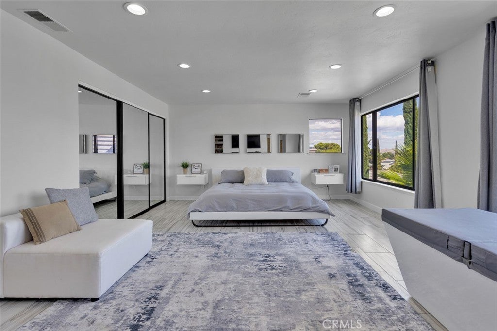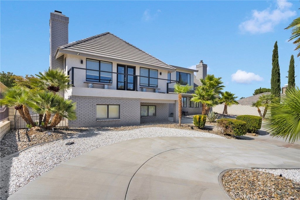Welcome to an extraordinary architectural residence located within the highly sought-after community of Spring Valley Lake. Set on one of the rare 20,000 sq ft half-acre lots, this FOUR-level Mid-Century Modern–inspired home offers a distinctive design and presence rarely found in the High Desert. The property delivers grand luxury curb appeal, with the home set far back from the street for added privacy and comfort, complimented by mature palm trees and a commanding arrival you’ll be proud to showcase. True gated RV & Boat parking—a rare feature within this HOA—along with ample additional parking provides everyday convenience. This 3-bedroom, 2 full bath, 2 half bath residence has been completely remodeled, blending industrial-modern design with warm natural elements. High ceilings, oversized ceiling fans, the appearance of architectural concrete pillars, and rich all natural wood beams & finishes create an ambiance reminiscent of a high-end urban loft, especially striking in the evening hours. The designer kitchen features commercial-grade built-in appliances, including a 48-inch built-in refrigerator, convection oven, microwave, wine refrigerator, custom range hood, and commercial-style sink and faucet. All natural-wood breakfast and dining nook is seamlessly integrated into the countertops. While a wood-burning stove anchors the family room. The entire third level offers an expansive great room with 2 grand windows and dual access doors to a private balcony with valley views, wet bar, fireplace, half bathroom—ideal for a home office, game room, formal dining area, or optional bedroom. This is one of the home's most versatile and inviting spaces. The fourth level is exclusively dedicated to the primary retreat, featuring 2 grand windows giving panoramic views of the valley, walk-in closet, and spa-inspired bath with oversized walk-in shower, rain and multi-head shower system, and oversized separate jetted soaking tub. The ground level includes two additional bedrooms and a spa-style bathroom with deep soaking tub, rain and dual shower heads, and Bluetooth speakers for an elevated experience. Additional highlights include a tankless water heater, freshly painted deck, and fully landscaped with natural grass and mature pomegranate and pistachio trees—no artificial turf. Offering architectural distinction, modern luxury, and rare amenities, this exceptional residence truly stands apart. Schedule your private showing today.