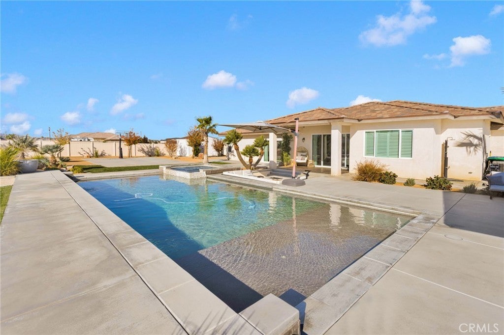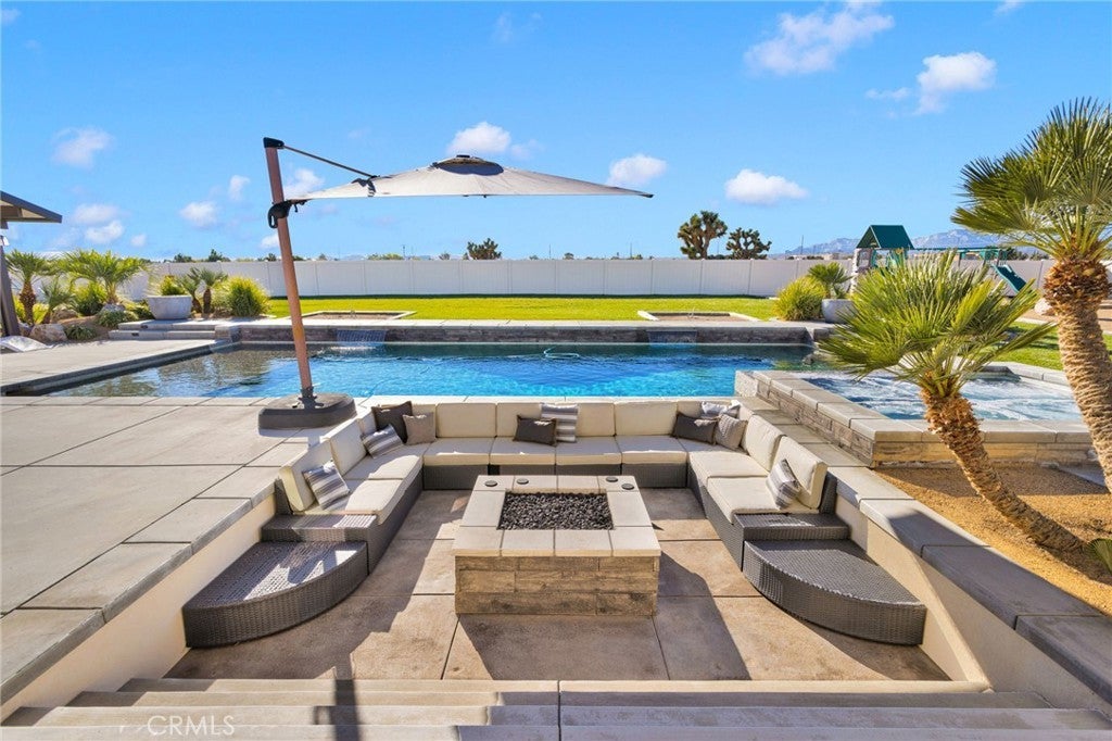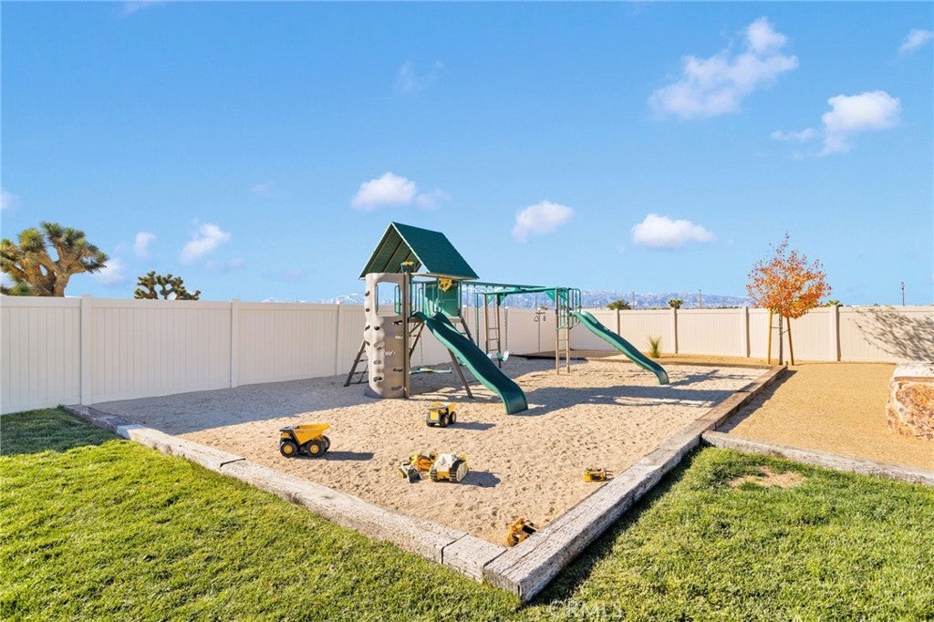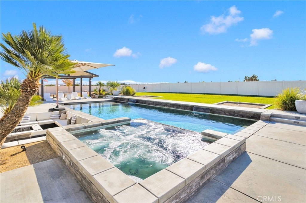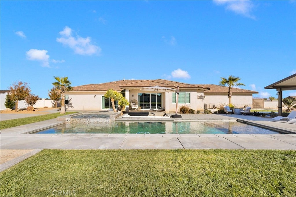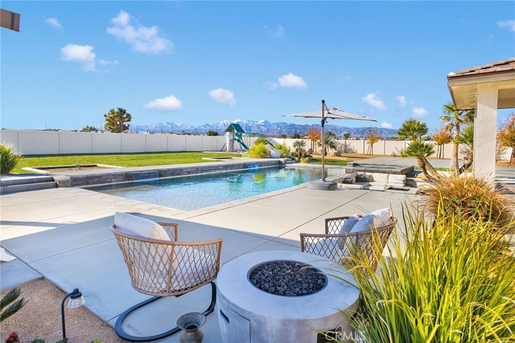 CUSTOM BUILT DONOVAN HOME-NEWER CONSTRUCTION-Inside, this home offers 4 bedrooms, 3.5 bathrooms, and a thoughtful layout that includes a Mother-In-Law suite, Main Master has His and Hers Closets with a Custom Organization and a Built in Secured Safe. Every bathroom features Custom-tiled showers, custom cabinetry and under cabinet lighting, adding to the home’s luxury feel. The heart of the home is the Chef’s kitchen — complete with Commercial-Grade Built-in Appliances, Granite Countertops, a Large Center Island, Custom Cabinetry, Wine Refrigerator, Large Walk In Pantry, Stainless Steel Appliances and Under-Cabinet Lighting. The adjoining Great Room provides the perfect space for hosting and gathering and a beautiful Electric Fireplace. Entire home has Custom Shutters throughout. Step into your own Private Retreat featuring an incredible 40’ x 20’ HEATED V-BOTTOM PLAY POOL with a Swim-up Bar, Baja Shelf, Swim step, with an Oversized IN GROUND Spa. Entertain in the Sunken Lounge with Gas Fire Pit. The backyard is fully landscaped and designed for year-round enjoyment with an Alumawood Covered Patio ideal for a Full Outdoor Kitchen, Outdoor shower, Gas Fire Bowls, In-ground Trampoline, and a Park-like playground for the kids. The property is also plumbed for an Outdoor sauna, includes plumbing for Garden beds, Dog Run and a Large Storage Shed for all your extras. Vinyl fencing surrounds the pool for privacy, with chain-link securing the perimeter. The property offers an IMMACULATE Oversized FOUR CAR Garage with 10-ft lid and Epoxy Floor, OVERSIZED DRIVEWAY, Block Wall with Custom Iron Gates, and Multiple Secured areas throughout the lot. Sitting on over 2 Acres, property has Tons of Space for Vehicles, Toys, or Storage. Enjoy Views of the Wrightwood Mountains, Close to Shopping, ON PAVEMENT and located in the Snowline School District, approximately 1.5 Miles from Baldy Mesa Elementary School and Quail Valley Middle School.