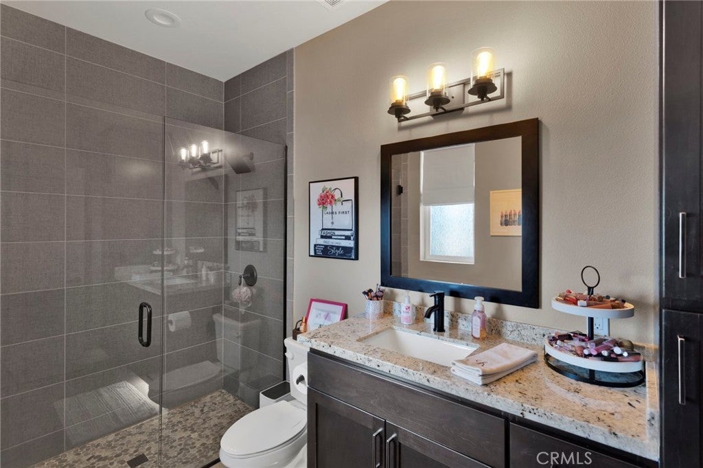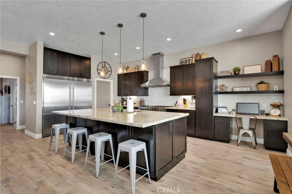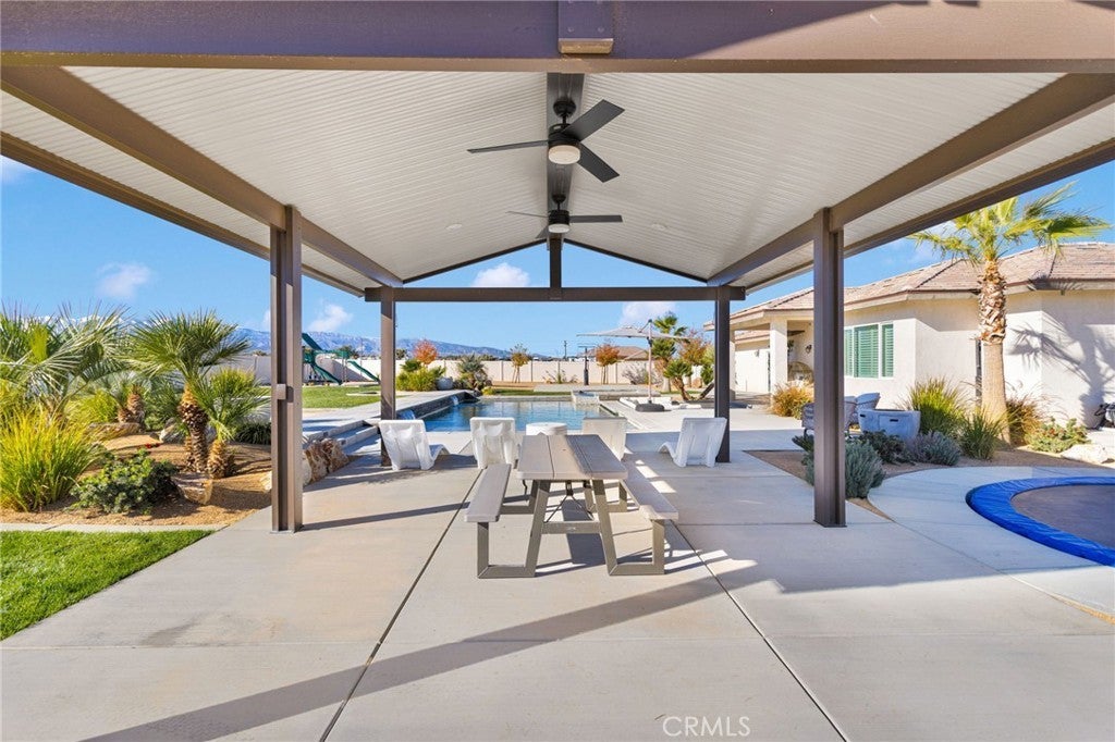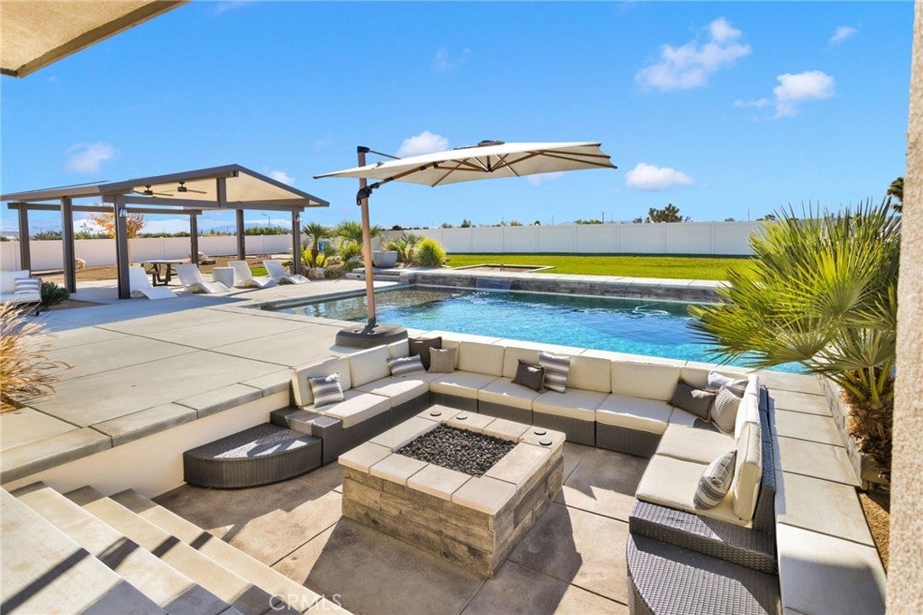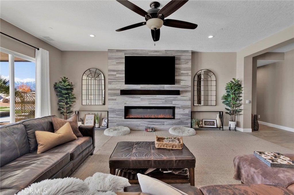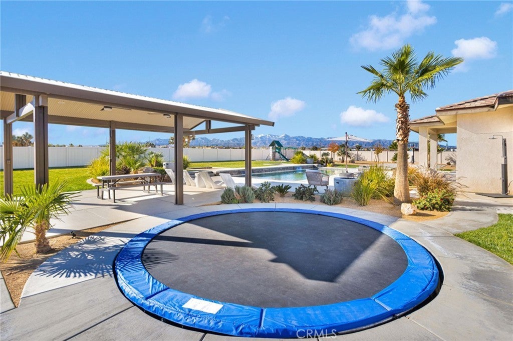 CUSTOM BUILT DONOVAN HOME-NEWER CONSTRUCTION-Inside, this home offers 4 bedrooms, 3.5 bathrooms, and a thoughtful layout that includes a Mother-In-Law suite, Main Master has His and Hers Closets with a Custom Organization and a Built in Secured Safe. Every bathroom features Custom-tiled showers, custom cabinetry and under cabinet lighting, adding to the home’s luxury feel. The heart of the home is the Chef’s kitchen — complete with Commercial-Grade Built-in Appliances, Granite Countertops, a Large Center Island, Custom Cabinetry, Wine Refrigerator, Large Walk In Pantry, Stainless Steel Appliances and Under-Cabinet Lighting. The adjoining Great Room provides the perfect space for hosting and gathering and a beautiful Electric Fireplace. Entire home has Custom Shutters throughout. Step into your own Private Retreat featuring an incredible 40’ x 20’ HEATED V-BOTTOM PLAY POOL with a Swim-up Bar, Baja Shelf, Swim step, with an Oversized IN GROUND Spa. Entertain in the Sunken Lounge with Gas Fire Pit. The backyard is fully landscaped and designed for year-round enjoyment with an Alumawood Covered Patio ideal for a Full Outdoor Kitchen, Outdoor shower, Gas Fire Bowls, In-ground Trampoline, and a Park-like playground for the kids. The property is also plumbed for an Outdoor sauna, includes plumbing for Garden beds, Dog Run and a Large Storage Shed for all your extras. Vinyl fencing surrounds the pool for privacy, with chain-link securing the perimeter. The property offers an IMMACULATE Oversized FOUR CAR Garage with 10-ft lid and Epoxy Floor, OVERSIZED DRIVEWAY, Block Wall with Custom Iron Gates, and Multiple Secured areas throughout the lot. Sitting on over 2 Acres, property has Tons of Space for Vehicles, Toys, or Storage. Enjoy Views of the Wrightwood Mountains, Close to Shopping, ON PAVEMENT and located in the Snowline School District, approximately 1.5 Miles from Baldy Mesa Elementary School and Quail Valley Middle School.